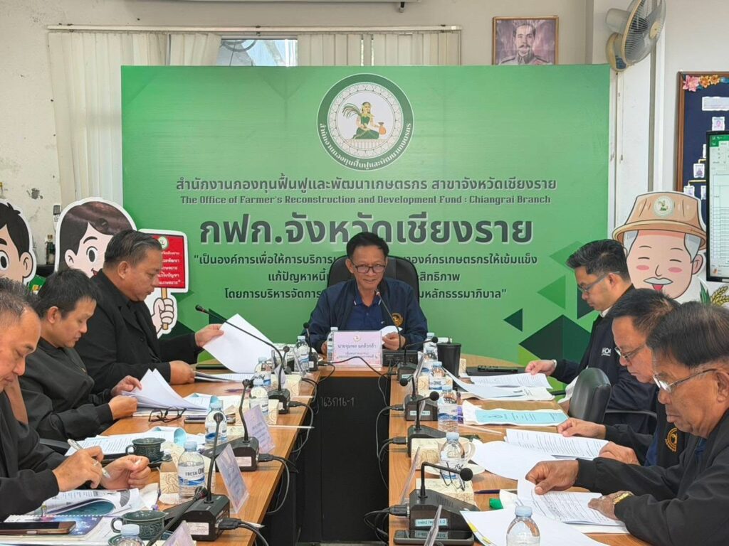 วันที่ 24 เมษายน 2568 เวลา 13.00 น.สำนักงานกองทุนฟื้นฟูและพัฒนาเกษตรกร สาขาจังหวัดเชียงราย (กฟก.) จัดประชุมคณะอนุกรรมการกองทุนฟื้นฟูและพัฒนาเกษตรกร จังหวัดเชียงราย ครั้งที่ 4/2568 โดยมีนายเสงี่ยม เเสนพิช เป็นประธาน และมีนายนิยม สุวรรณประภา หัวหน้าสำนักงานกองทุนฟื้นฟูและพัฒนาเกษตรกร สาขาจังหวัดเชียงราย (กฟก.) ทำหน้าที่อนุกรรมการและเลขานุการ ณ ห้องประชุมสำนักงานสภาเกษตรกรจังหวัดเชียงราย โดยที่ประชุมมีวาระพิจารณาดังนี้