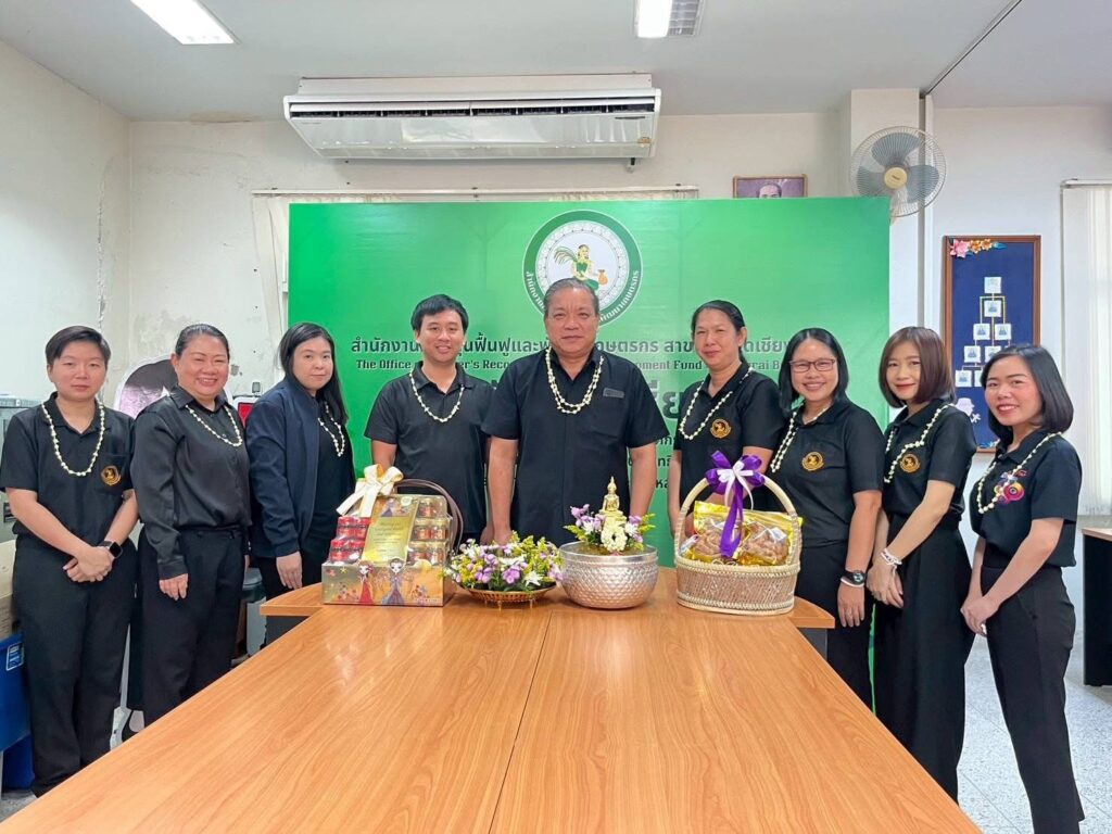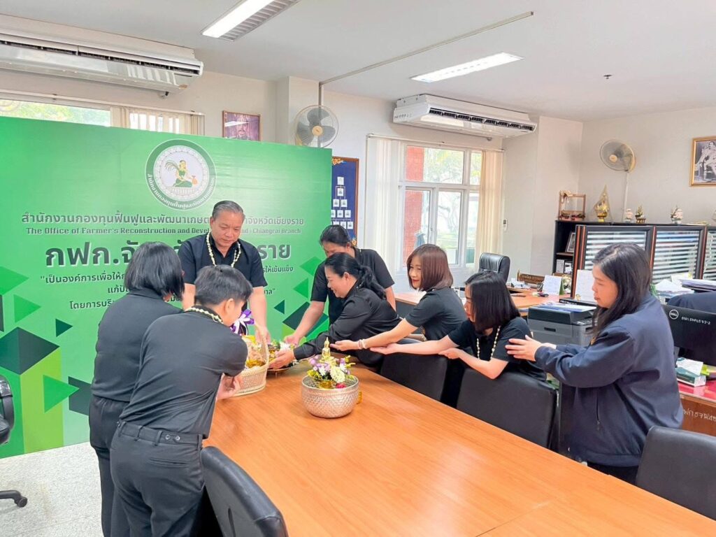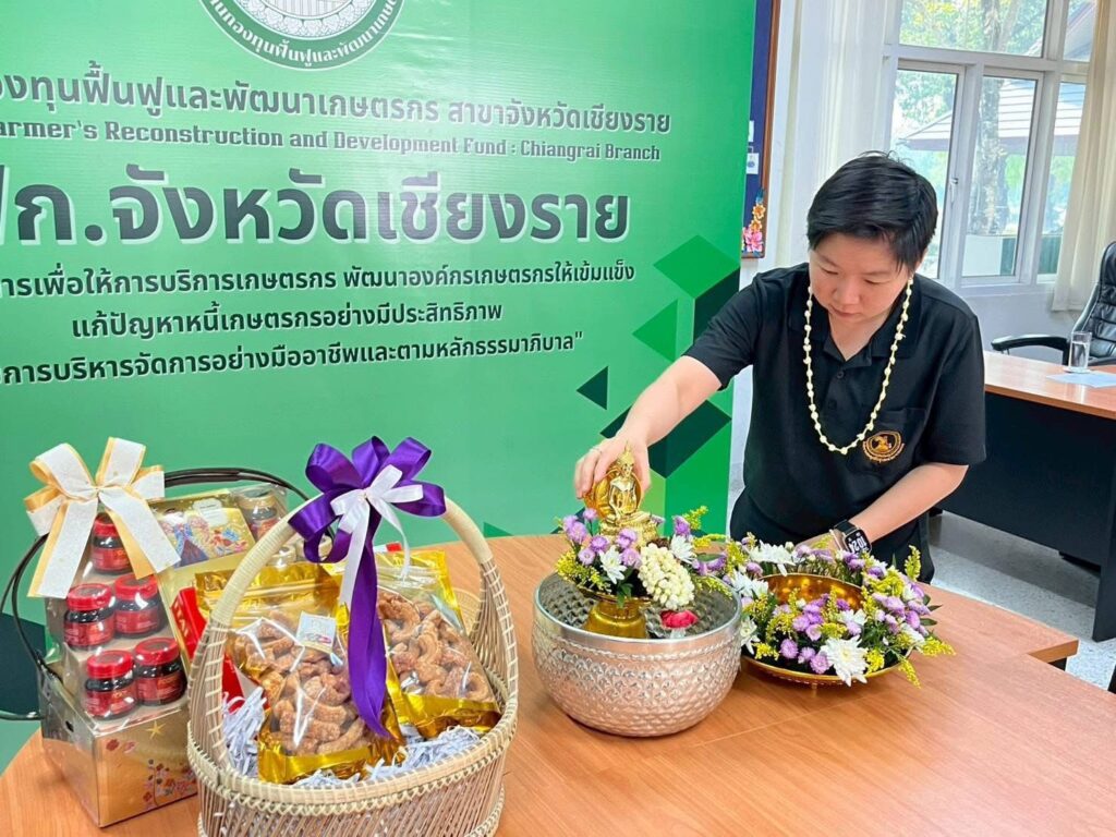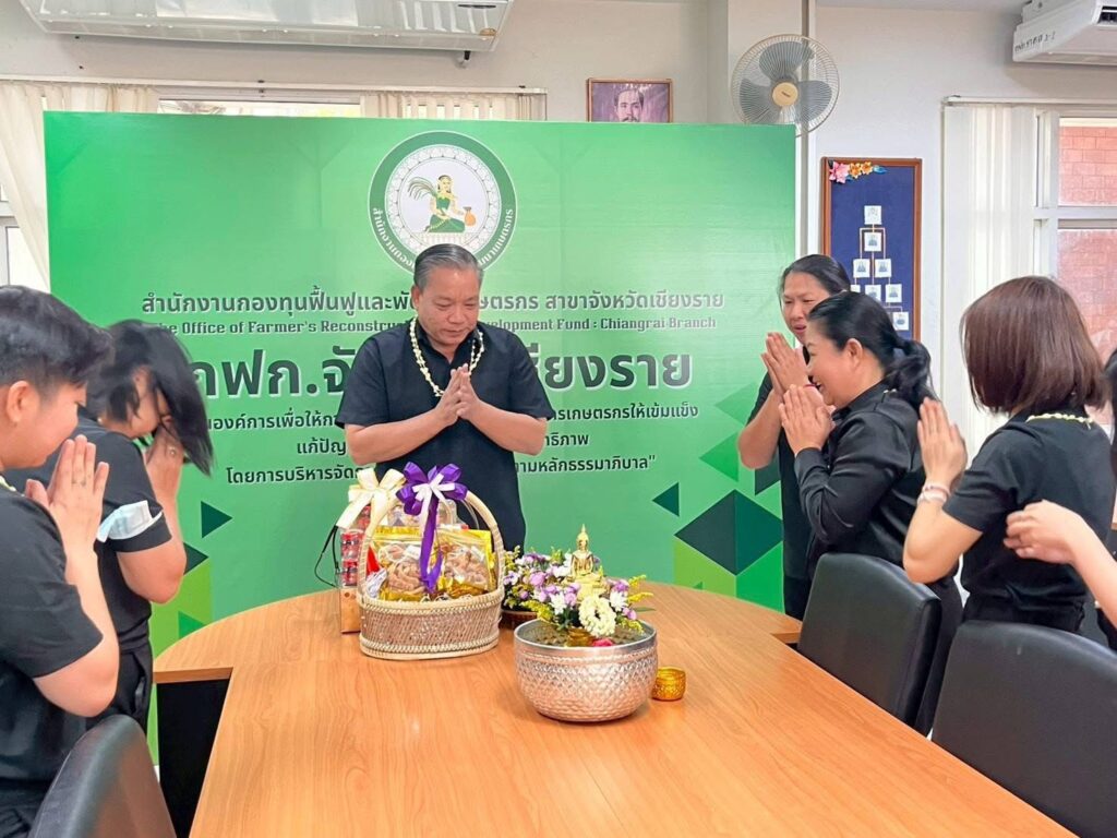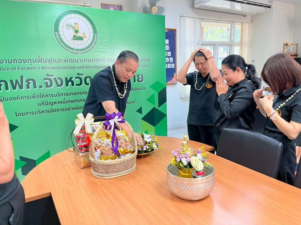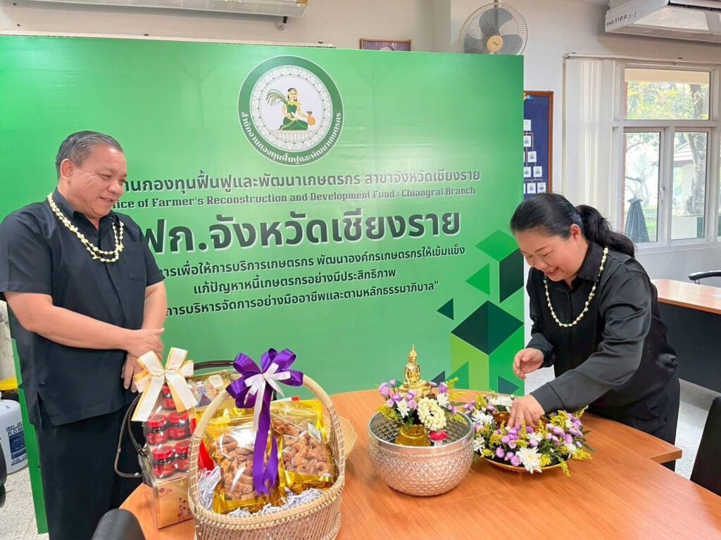 วันที่ 16 เมษายน 2569 เวลา 09.29 น. สำนักงานกองทุนฟื้นฟูและพัฒนาเกษตรกร สาขาจังหวัดเชียงราย (กฟก.) จัดพิธีสรงน้ำพระ และรดน้ำดำหัวนายนิยม สุวรรณประภา หัวหน้าสำนักงานกองทุนฟื้นฟูและพัฒนาเกษตรกร สาขาจังหวัดเชียงราย (กฟก.) เนื่องในวันสงกรานต์ 2569 ณ สำนักงานกองทุนฟื้นฟูและพัฒนาเกษตรกร สาขาจังหวัดเชียงราย (กฟก.) ศาลากลางจังหวัดเชียงราย ชั้น 1