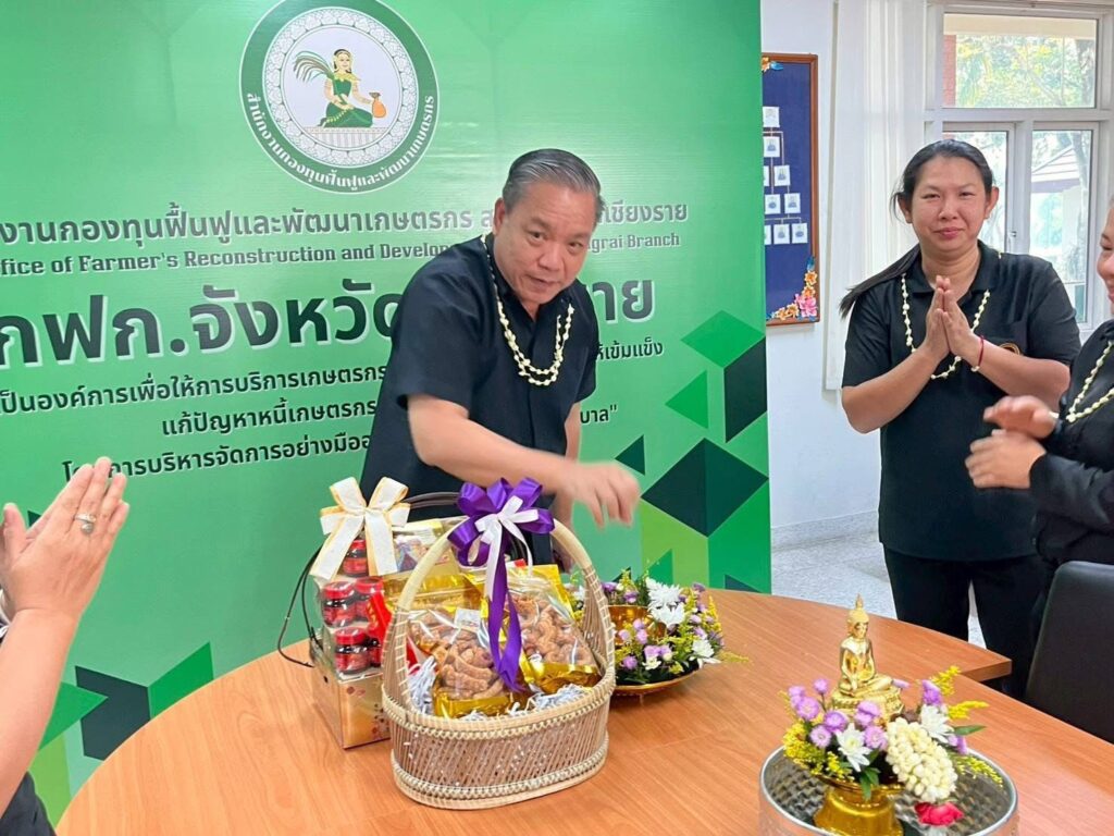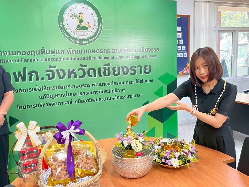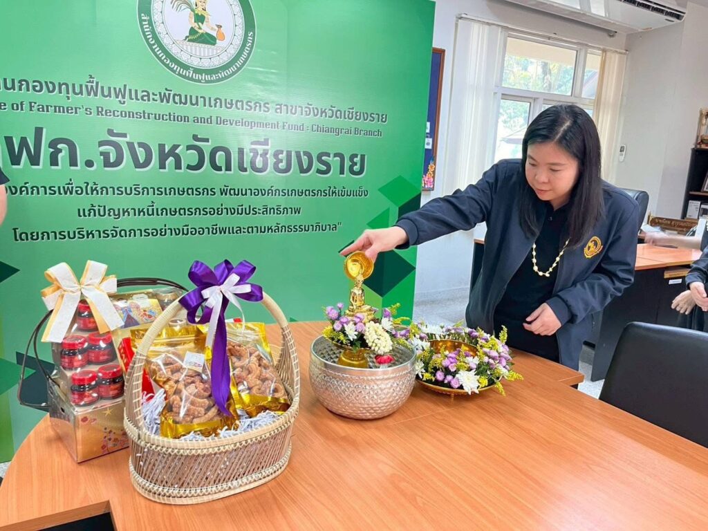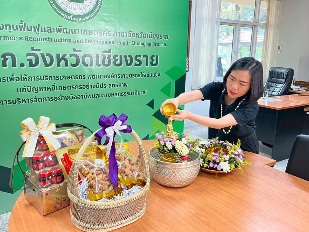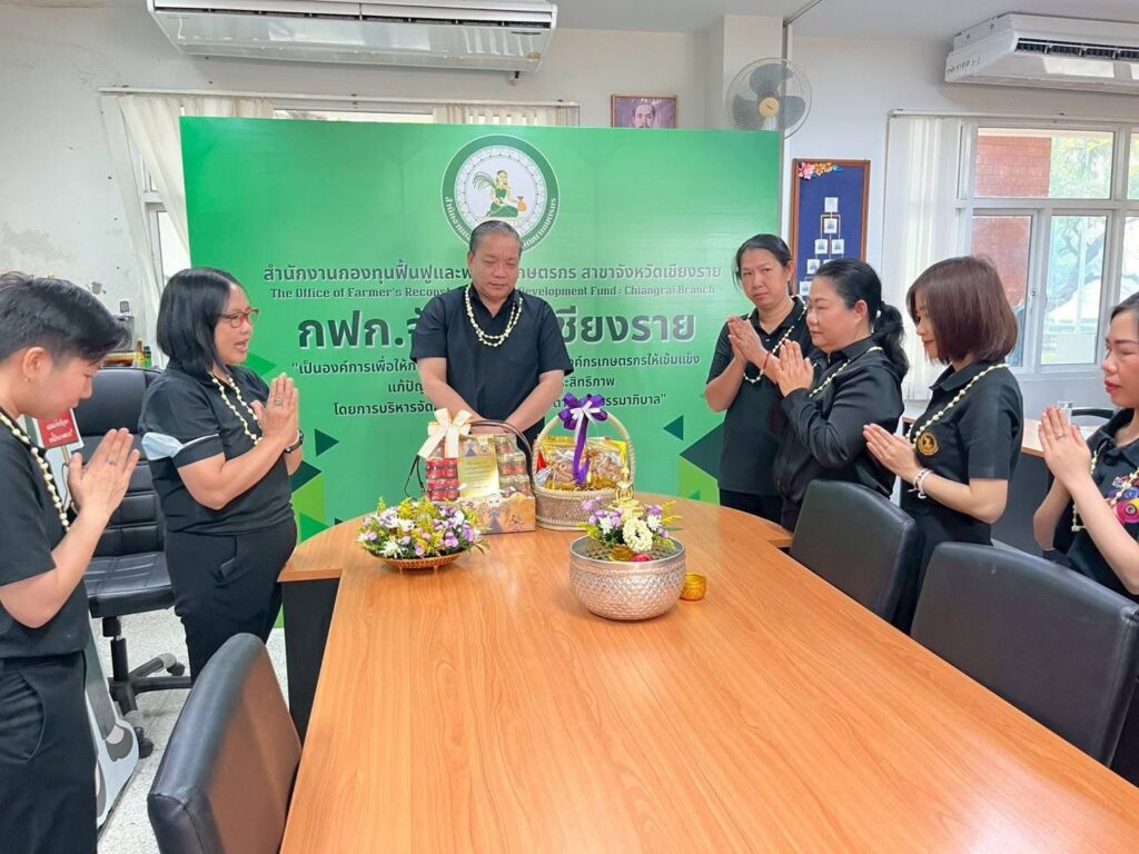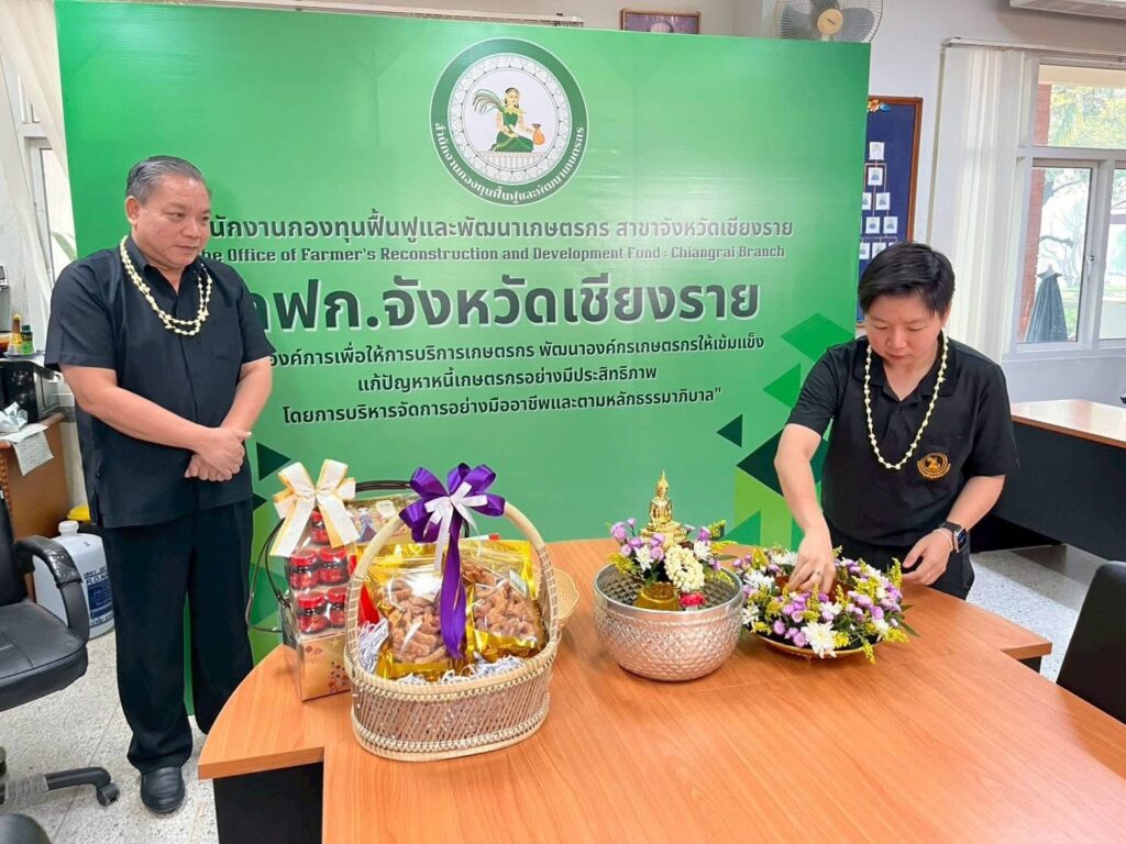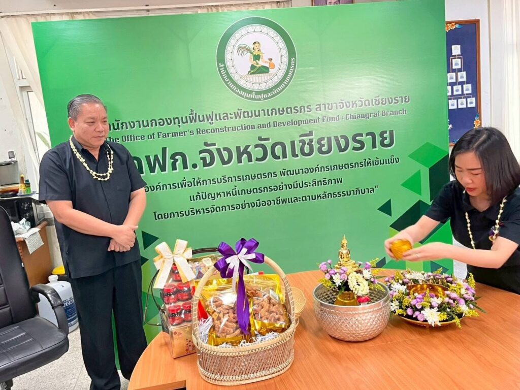 วันที่ 16 เมษายน 2569 เวลา 09.29 น. สำนักงานกองทุนฟื้นฟูและพัฒนาเกษตรกร สาขาจังหวัดเชียงราย (กฟก.) จัดพิธีสรงน้ำพระ และรดน้ำดำหัวนายนิยม สุวรรณประภา หัวหน้าสำนักงานกองทุนฟื้นฟูและพัฒนาเกษตรกร สาขาจังหวัดเชียงราย (กฟก.) เนื่องในวันสงกรานต์ 2569 ณ สำนักงานกองทุนฟื้นฟูและพัฒนาเกษตรกร สาขาจังหวัดเชียงราย (กฟก.) ศาลากลางจังหวัดเชียงราย ชั้น 1