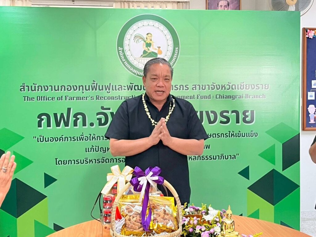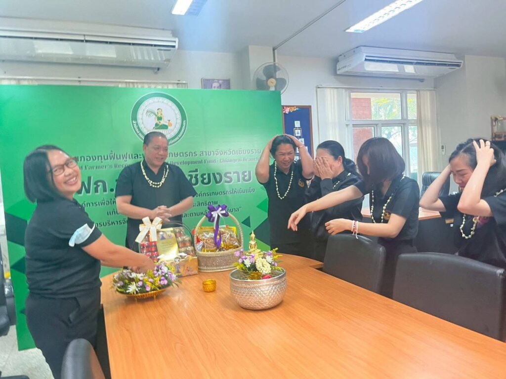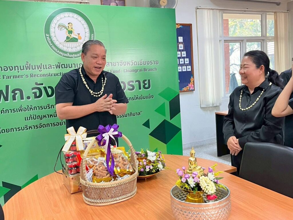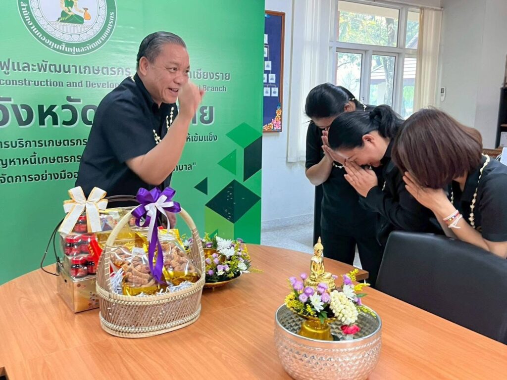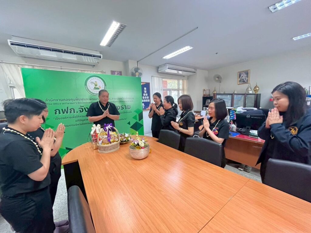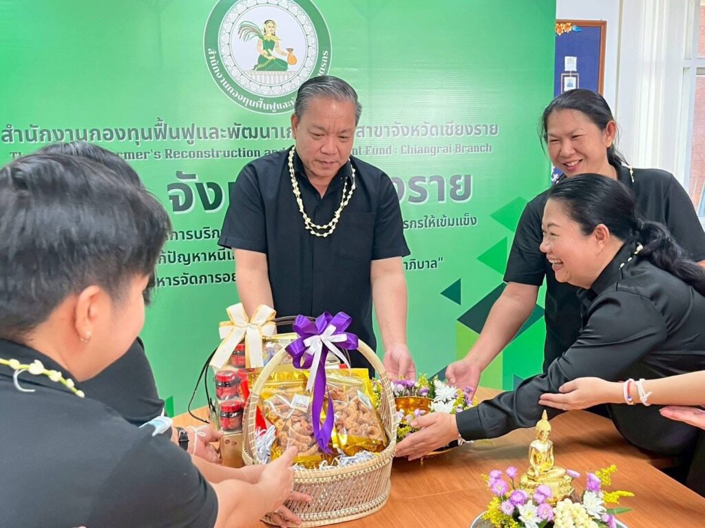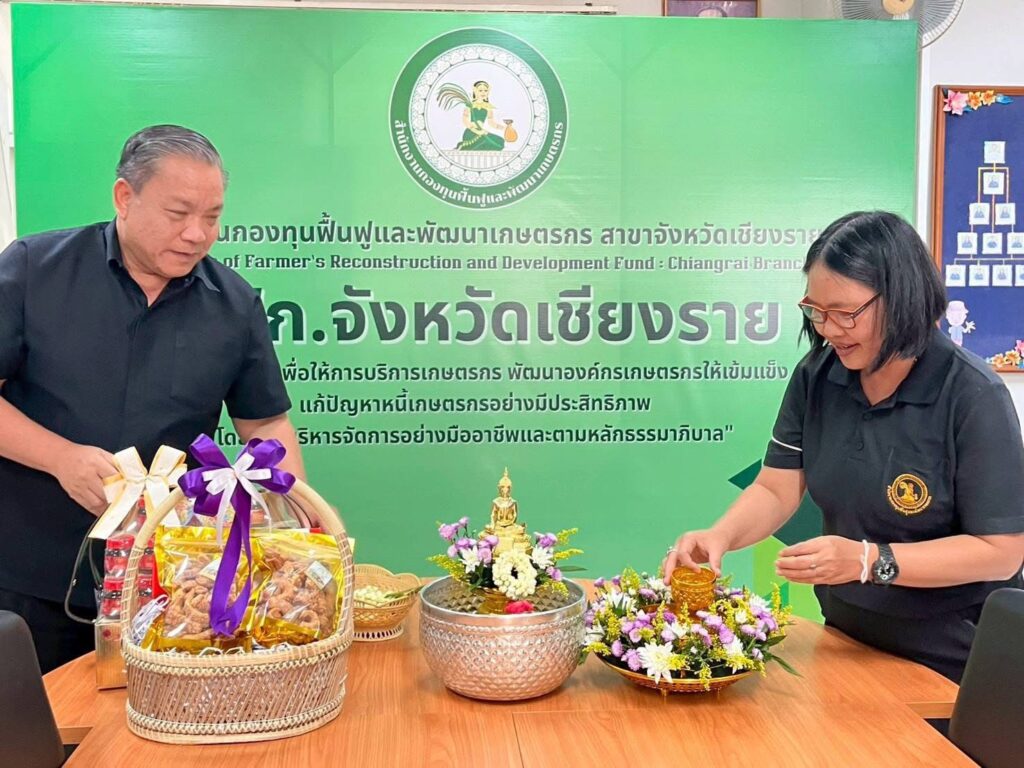 วันที่ 16 เมษายน 2569 เวลา 09.29 น. สำนักงานกองทุนฟื้นฟูและพัฒนาเกษตรกร สาขาจังหวัดเชียงราย (กฟก.) จัดพิธีสรงน้ำพระ และรดน้ำดำหัวนายนิยม สุวรรณประภา หัวหน้าสำนักงานกองทุนฟื้นฟูและพัฒนาเกษตรกร สาขาจังหวัดเชียงราย (กฟก.) เนื่องในวันสงกรานต์ 2569 ณ สำนักงานกองทุนฟื้นฟูและพัฒนาเกษตรกร สาขาจังหวัดเชียงราย (กฟก.) ศาลากลางจังหวัดเชียงราย ชั้น 1