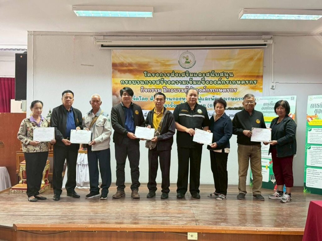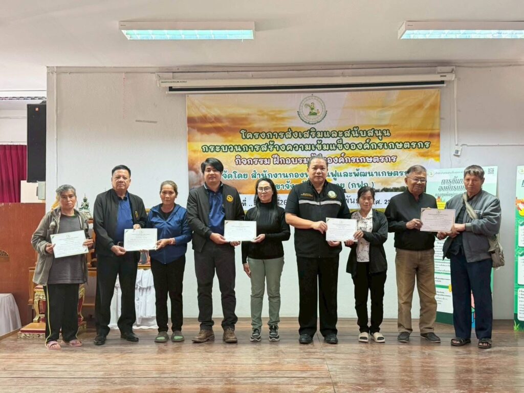 กฟก.จังหวัดเชียงราย มอบเกียรติบัตรให้ผู้แทนองค์กรเกษตรกร หลักสูตรการพัฒนาองค์กรเกษตรกรให้เข้มแข็งภายใต้วิกฤติโลกสู่การพัฒนาที่ยั่งยืน รุ่นที่ 3