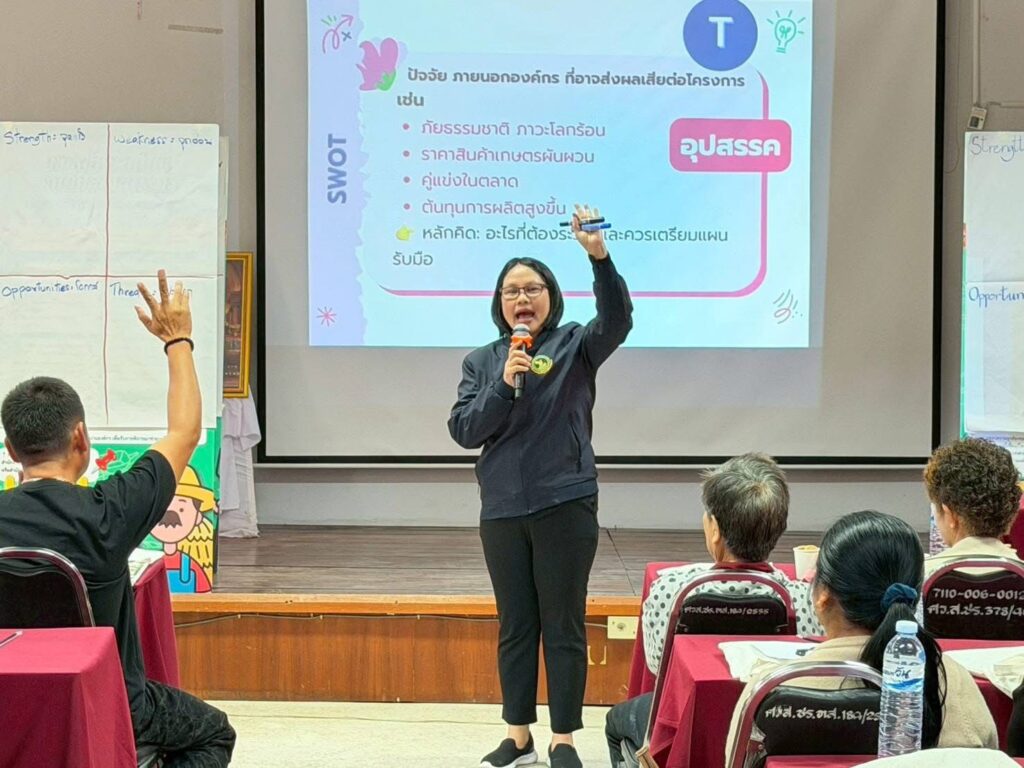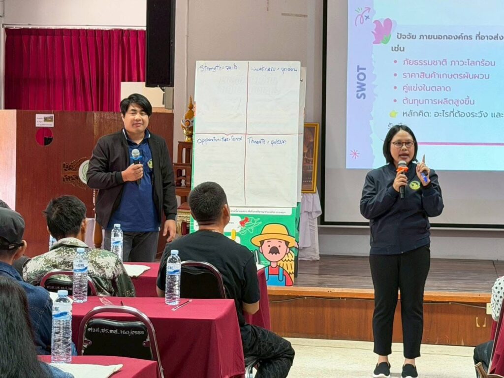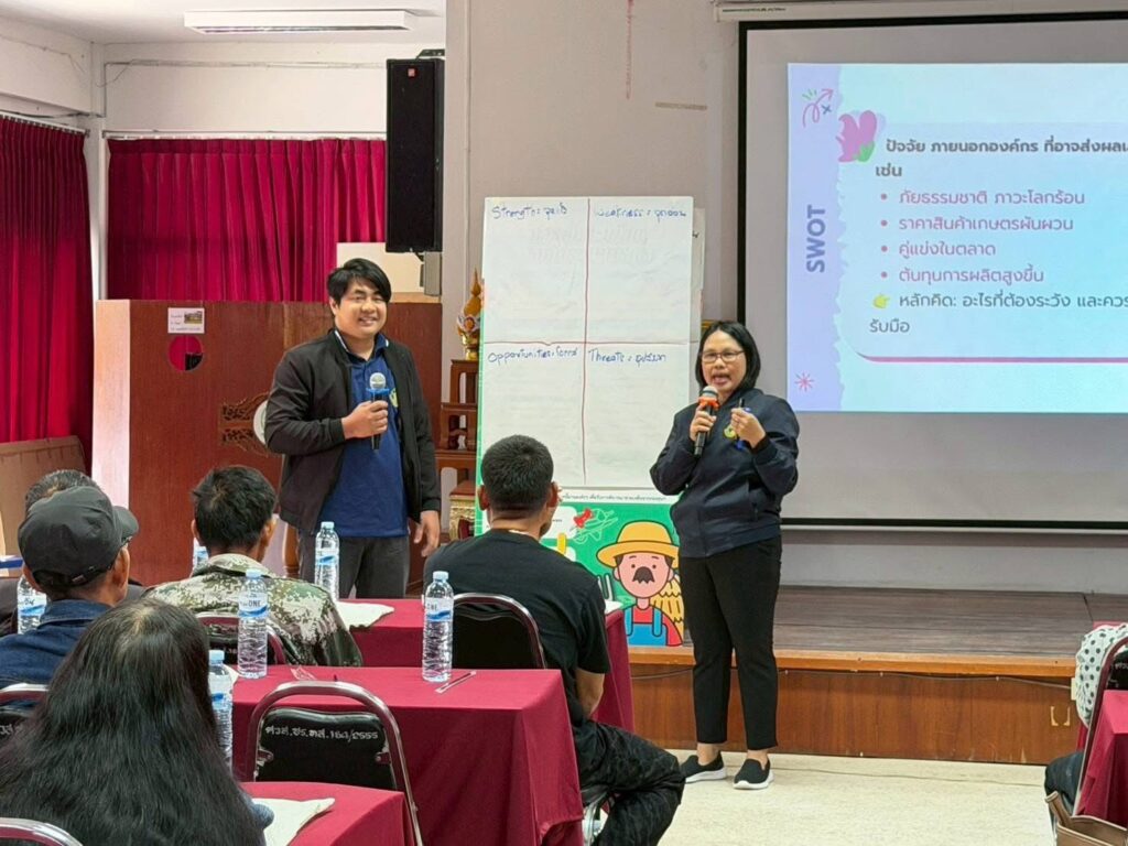 ทั้งนี้ในวันที่สอง ของการอบรม ได้ดำเนินการตามขั้นตอน ชี้แจงประกาศ หลักเกณฑ์ แนวทางการฟื้นฟูและพัฒนาเกษตรกร ปี 2569 การทำ Workshop แนวทางการเสนอแผนและโครงการฟื้นฟูและพัฒนาเกษตรกร โดยใช้ Swot Analysis เป็นเครื่องมือในวิเคราะห์ความเป็นไปได้ของแผนและโครงการฟื้นฟูและพัฒนาเกษตรกร ขององค์กรเกษตรกร การแลกเปลี่ยนเรียนรู้เพื่อการฟื้นฟูและพัฒนาเกษตรกรในเวที พร้อมทั้งประเมินผลการเรียนรู้หลังจากอบรม.