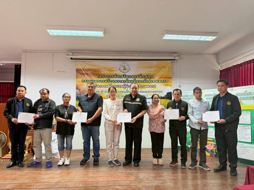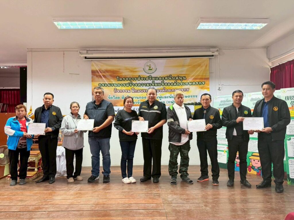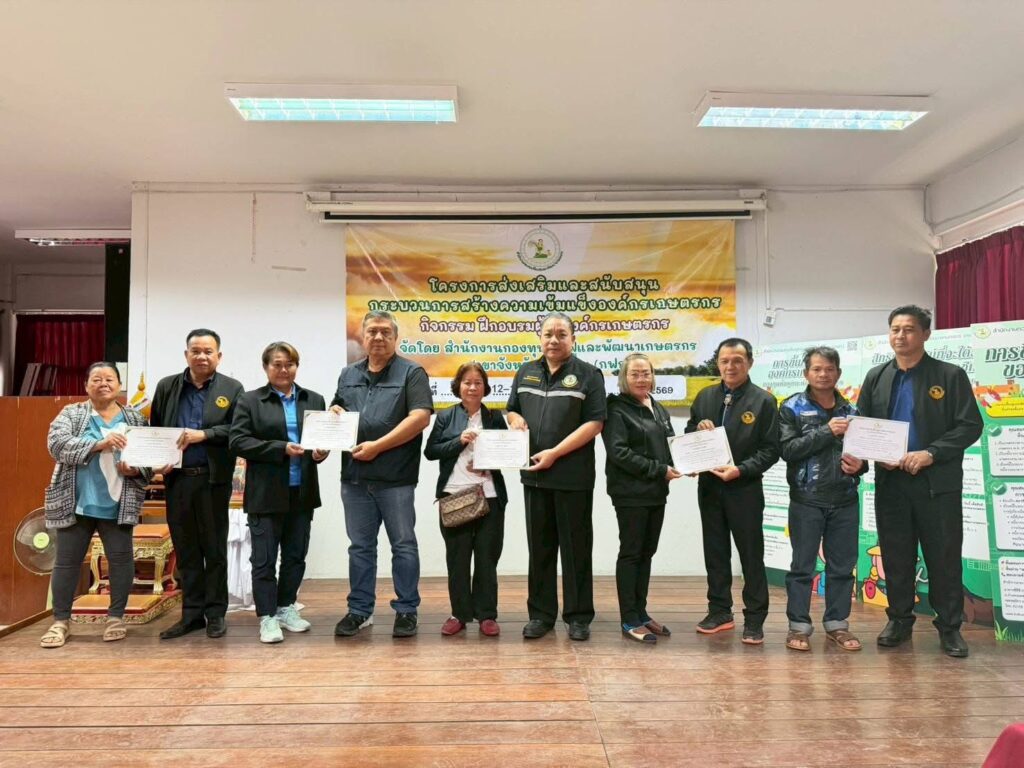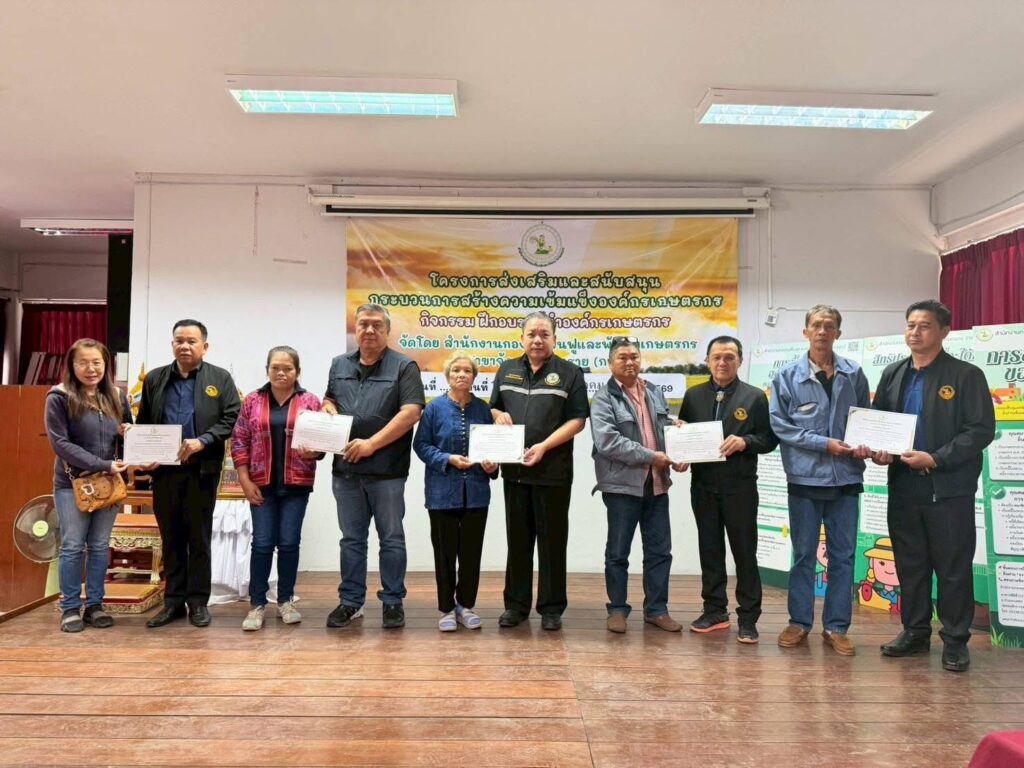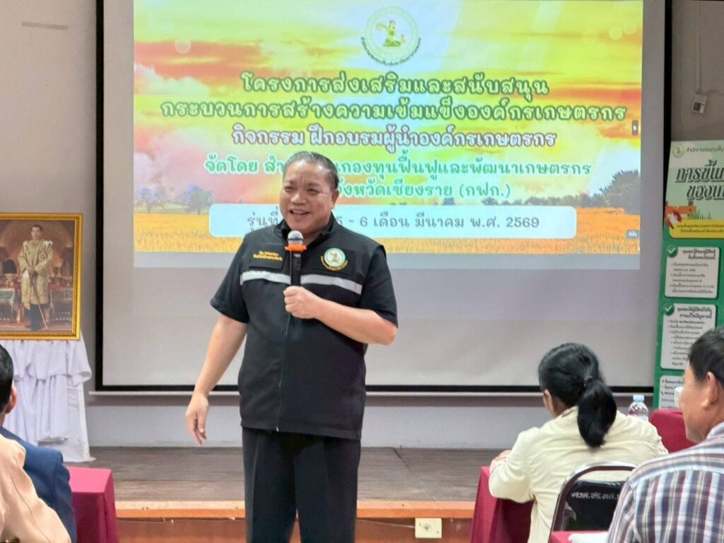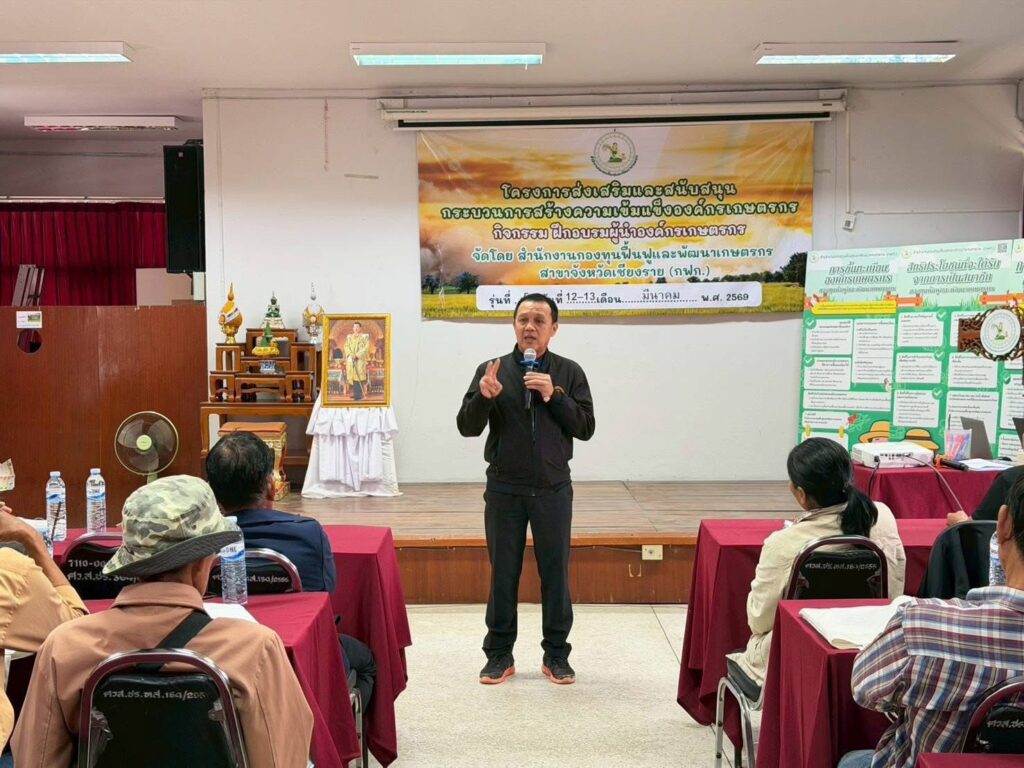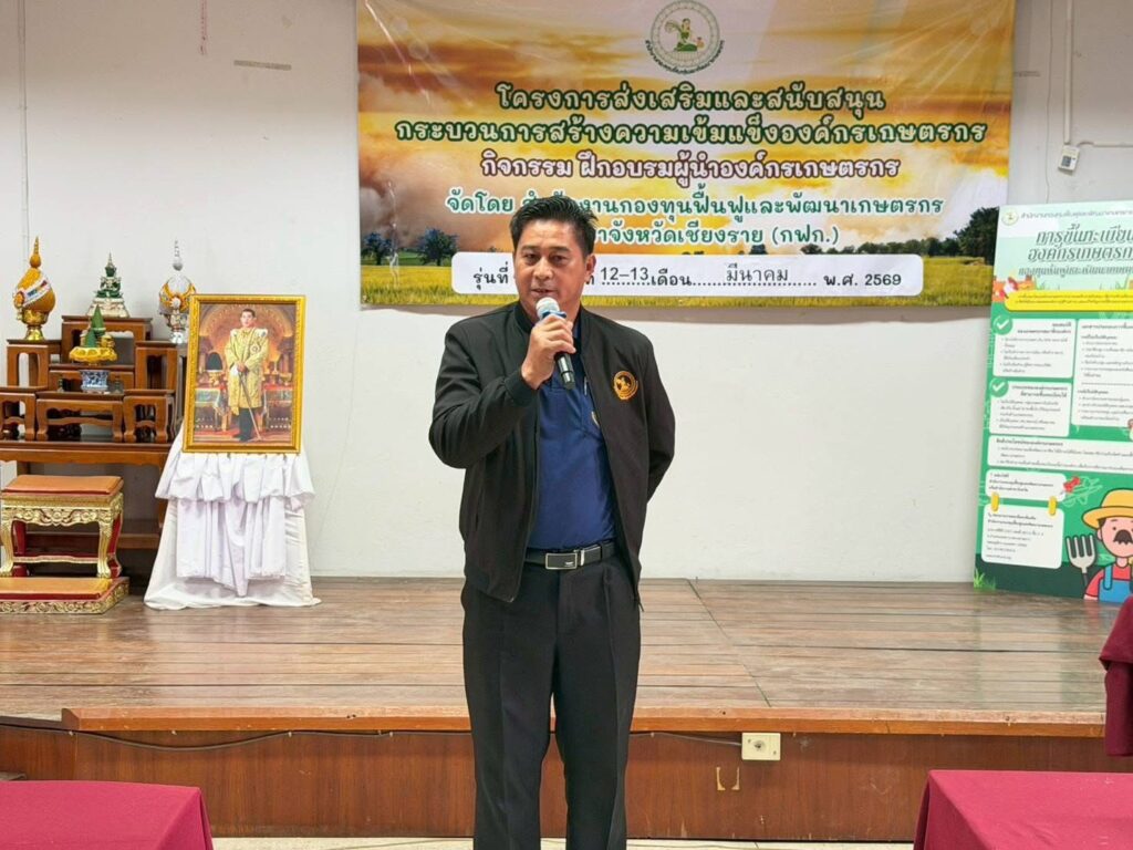 วันที่ 13 มีนาคม 2569 นายนิยม สุวรรณประภา หัวหน้าสำนักงานกองทุนฟื้นฟูและพัฒนาเกษตรกร สาขาจังหวัดเชียงราย (กฟก.) เป็นประธานปิดการอบรม และมอบเกียรติบัตรให้ผู้แทนองค์กรเกษตรกร ที่ผ่านการการอบรมผู้นำองค์กรเกษตรกร หลักสูตรการพัฒนาองค์กรเกษตรกรให้เข้มแข็งภายใต้วิกฤติโลกสู่การพัฒนาที่ยั่งยืน ภายใต้โครงการส่งเสริมและสนับสนุนกระบวนการสร้างความเข้มแข็งองค์กรเกษตรกร รุ่นที่ 5 ระหว่างวันที่ 12 – 13 มีนาคม 2569 ประจำปีงบประมาณ 2569 จำนวน 25 องค์กร เกษตรกร จำนวน 125 คน ณ ห้องประชุมศูนย์วิจัยพืชสวนเชียงราย อำเภอเมืองเชียงราย จังหวัดเชียงราย