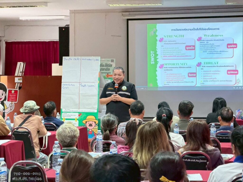 ทั้งนี้ในวันที่สอง ของการอบรม ได้ดำเนินการตามขั้นตอน ชี้แจงประกาศ หลักเกณฑ์ แนวทางการฟื้นฟูและพัฒนาเกษตรกร ปี 2569 การทำ Workshop แนวทางการเสนอแผนและโครงการฟื้นฟูและพัฒนาเกษตรกร โดยใช้ Swot Analysis เป็นเครื่องมือในวิเคราะห์ความเป็นไปได้ของแผนและโครงการฟื้นฟูและพัฒนาเกษตรกร ขององค์กรเกษตรกร การแลกเปลี่ยนเรียนรู้เพื่อการฟื้นฟูและพัฒนาเกษตรกรในเวที พร้อมทั้งประเมินผลการเรียนรู้หลังจากอบรม.