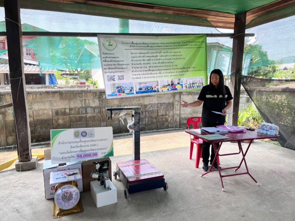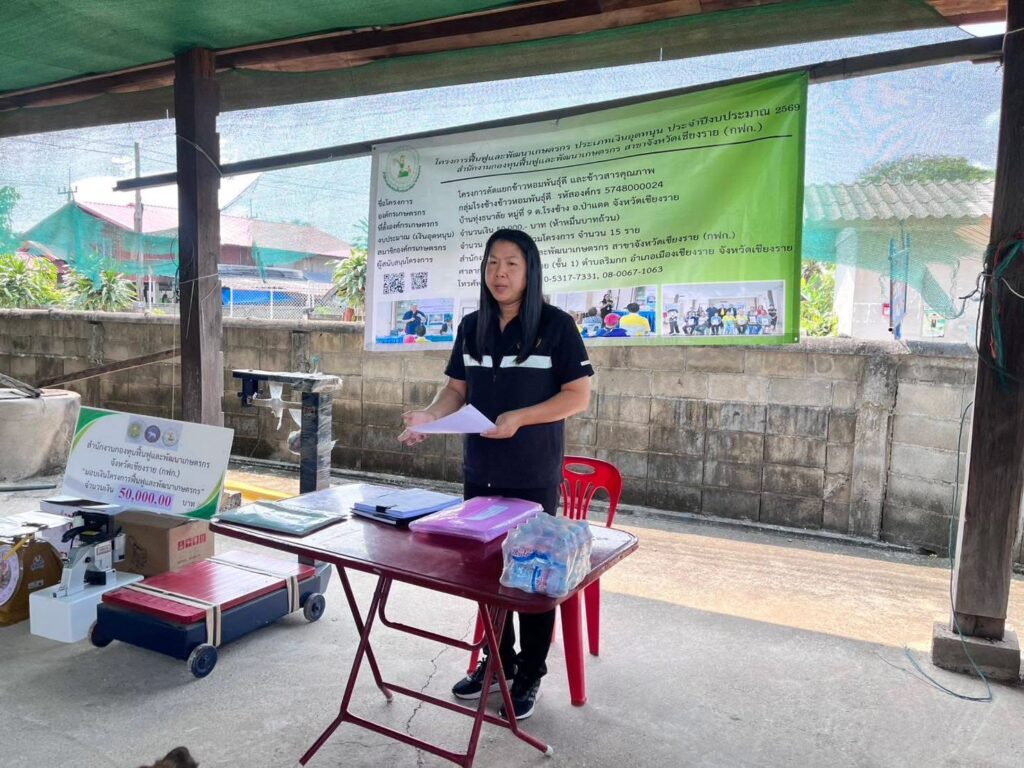 วันที่ 18 มีนาคม 2569 เวลา 09.30 น. นายนิยม สุวรรณประภา หัวหน้าสำนักงานกองทุนฟื้นฟูและพัฒนาเกษตรกร สาขาจังหวัดเชียงราย (กฟก.) มอบหมายให้นางสาวผุสดี มะเทวิน และนางสาวจุฑาทิพย์ ปินตาสาร ผู้ปฏิบัติงานสำนักงานสาขาจังหวัดเชียงราย ลงพื้นที่มอบเงินอุดหนุนโครงการฟื้นฟูและพัฒนาเกษตรกร และร่วมกิจกรรม/ส่งมอบเครื่องเย็บกระสอบ เครื่องชั่ง ขนาด 60 กก. และ เครื่องชั่ง ขนาด 300 กก. (กิจกรรมในงวดที่ 1) ให้องค์กรเกษตรกร กลุ่มโรงช้างข้าวหอมพันธุ์ดี ณ บ้านโรงช้างใต้ หมู่ที่ 4 ตำบลโรงช้าง อำเภอป่าแดด จังหวัดเชียงราย