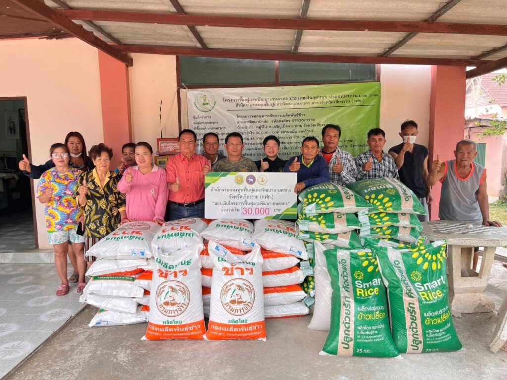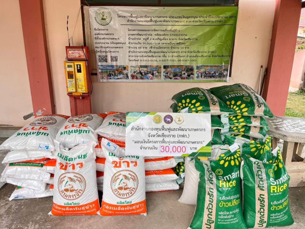 วันที่ 7 เมษายน 2569 เวลา 10.00 น. นายนิยม สุวรรณประภา หัวหน้าสำนักงานกองทุนฟื้นฟูและพัฒนาเกษตรกร สาขาจังหวัดเชียงราย (กฟก.) มอบหมายให้นางสาวจุฑาทิพย์ ปินตาสาร ผู้ปฏิบัติงานสำนักงานสาขาจังหวัด เเละนายณัฐภูมิ เข็มขาว ผู้ปฏิบัติงานกลุ่มงานบริการ ลงพื้นที่มอบเงินอุดหนุนโครงการฟื้นฟูและพัฒนาเกษตรกร และร่วมกิจกรรมส่งมอบเมล็ดพันธุ์ข้าว ให้องค์กรเกษตรกร กลุ่มเกษตรพัฒนาป่าก่อ โดยมีนายประเสริฐ พุทธรางกูร อนุกรรมการกองทุนฟื้นฟูและพัฒนาเกษตรกร จังหวัดเชียงราย (ผู้เเทนองค์กรเกษตรกร) เข้าร่วมด้วย ณ บ้านป่าก่อ หมู่ที่ 2 ตำบลเจริญเมือง อำเภอพาน จังหวัดเชียงราย