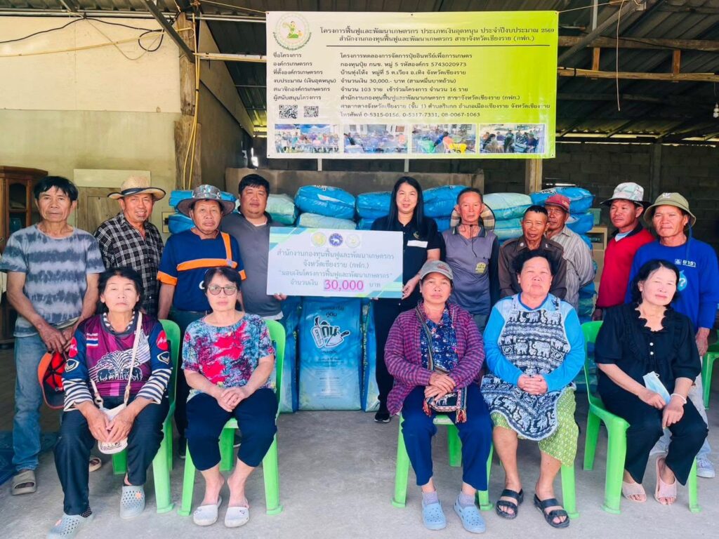 กฟก.จังหวัดเชียงราย มอบเงินอุดหนุนโครงการฟื้นฟูและพัฒนาเกษตรกร และร่วมกิจกรรมส่งมอบปุ๋ยอินทรีย์ ให้องค์กรเกษตรกร อำเภอเทิง