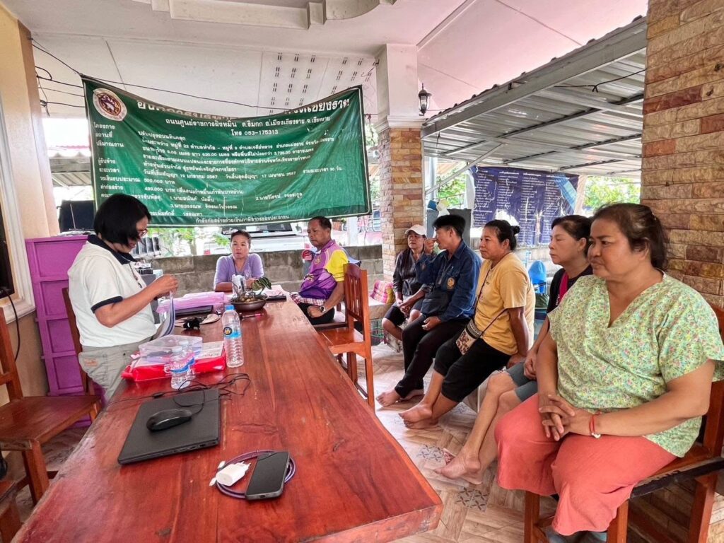 วันที่ 19 กันยายน 2568 เวลา 13.00 น. นายนิยม สุวรรณประภา หัวหน้าสำนักงานกองทุนฟื้นฟูและพัฒนาเกษตรกร สาขาจังหวัดเชียงราย (กฟก.) มอบหมายให้ นางสุกัญญา แสงหล้า พนักงานอาวุโส นางสาวจุฑาทิพย์ ปินตาสาร ผู้ปฏิบัติงานสำนักงานสาขาจังหวัดเชียงราย และนายณัฐภูมิ เข็มขาว ผู้ปฏิบัติงานกลุ่มงานบริการ ลงพื้นที่ประชุม ร่วมกับองค์กรเกษตรกรกลุ่มเกษตรฟื้นฟูร่วมใจพัฒนาบ้านร่มโพธิ์ทอง เพื่อสร้างความเข้าใจแนวทางการบริหารโครงการฯ ขั้นตอนปฏิบัติตามระเบียบ/หลักเกณฑ์ คู่มือและข้อปฏิบัติอื่น ๆ และเพื่อเตรียมความพร้อมในการจัดทำสัญญาขอรับการสนับสนุนงบประมาณโครงการฟื้นฟูและพัฒนาเกษตรกร ประเภทเงินอุดหนุนประจำปีงบประมาณ พ.ศ 2568 ณ อาคารอเนกประสงค์ บ้านร่มโพธิ์ทอง หมู่ที่ 22 ตำบลท่าก๊อ อำเภอแม่สรวย จังหวัดเชียงราย