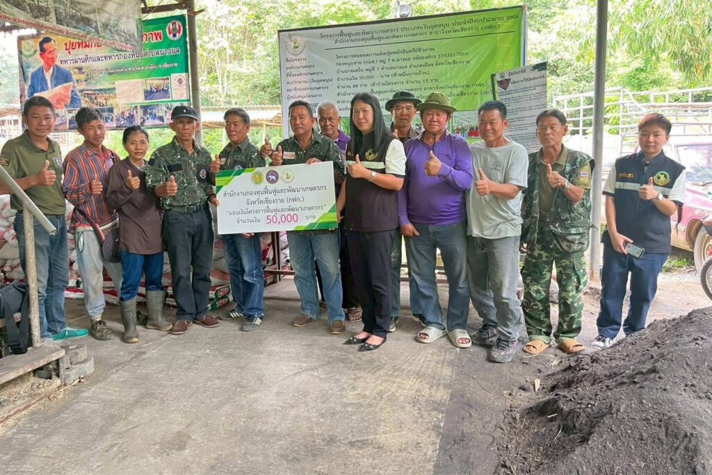 วันที่ 24 ตุลาคม 2568 เวลา 13.00 น. นายนิยม สุวรรณประภา หัวหน้าสำนักงานกองทุนฟื้นฟูและพัฒนาเกษตรกร สาขาจังหวัดเชียงราย (กฟก.) มอบหมายให้ นางสาวผุสดี มะเทวิน นางสาวจุฑาทิพย์ ปินตาสาร ผู้ปฏิบัติงานสำนักงานสาขา และนายณัฐภูมิ เข็มขาว ผู้ปฏิบัติงานกลุ่มงานบริการ ลงพื้นที่ร่วมส่งมอบปัจจัยการผลิต ปุ๋ยหมักอินทรีย์ชีวภาพ กิจกรรมในงวดที่ 2 ให้องค์กรเกษตรกร กลุ่มกองหนุนชาย (กนช.) หมู่ 7 ณ บ้านนางแลใน ตำบลนางแล อำเภอเมืองเชียงราย จังหวัดเชียงราย