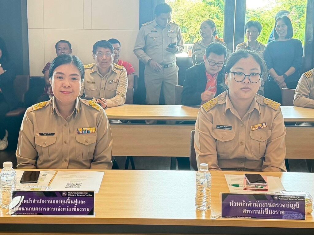 วันที่ 26 กันยายน 2568 นายนิยม สุวรรณประภา หัวหน้าสำนักงานกองทุนฟื้นฟูและพัฒนาเกษตรกร สาขาจังหวัดเชียงราย (กฟก.) มอบหมายให้ นางสาวศริญญา สุริยนต์ พนักงานทั่วไป เข้าร่วมพิธีทำบุญเปิดหอประชุมใหญ่ศาลากลางจังหวัดเชียงราย และเข้าร่วมประชุมคณะกรมการจังหวัดและหัวหน้าส่วนราชการ หัวหน้าหน่วยงานรัฐวิสาหกิจ และนายอำเภอ ประจำจังหวัดเชียงราย ครั้งที่ 9/2568 ประจำเดือนกันยายน 2568 โดยมีนายชรินทร์ ทองสุข ผู้ว่าราชการจังหวัดเชียงราย เป็นประธานในการประชุมฯ ณ หอประชุมใหญ่ศาลากลางจังหวัดเชียงราย ตำบลริมกก อำเภอเมืองเชียงราย จังหวัดเชียงราย