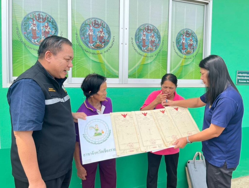 โดยการโอนโฉนดที่ดินและมอบโฉนดที่ดินคืนให้เกษตรกรรายดังกล่าว สืบเนื่องจากสำนักงานกองทุนฟื้นฟูและพัฒนาเกษตรกร (กฟก.) ได้เข้าไปชำระหนี้แทนเกษตรกร ให้กับสหกรณ์ฯ เจ้าหนี้ของเกษตรกร โดยเกษตรกรได้นำที่ดิน ไปจำนองค้ำประกันการกู้เงินกับสหกรณ์ฯ เพื่อนำเงินไปลงทุนทำเกษตร และเกษตรกรไม่สามารถชำระหนี้เงินกู้ให้กับสหกรณ์ฯได้ตามสัญญา และเกษตรกรได้ยื่นเรื่องขอความช่วยเหลือในการแก้ไขปัญหาหนี้สิน กับสำนักงานกองทุนฟื้นฟูและพัฒนาเกษตรกร สาขาจังหวัดเชียงราย (กฟก.) โดยได้รับการช่วยเหลือในการชำระหนี้แทนดังกล่าว