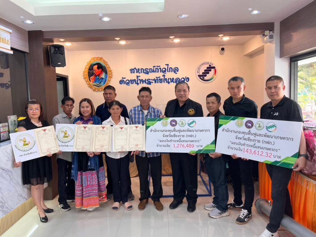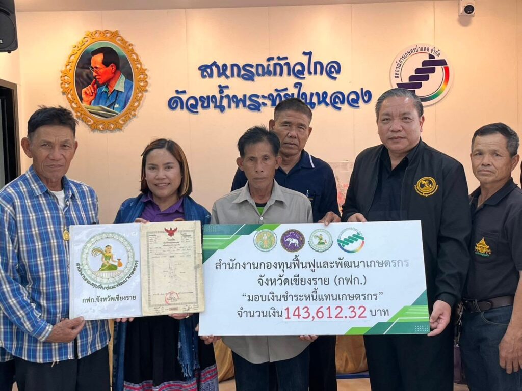 กฟก.เชียงราย มอบเงิน 1.4 ล้านกว่าบาท ชำระหนี้แทนเกษตรกร กลุ่มลูกหนี้สหกรณ์ฯ อ.ป่าเเดด รักษาที่ดินให้เกษตรกร กว่า 22 ไร่