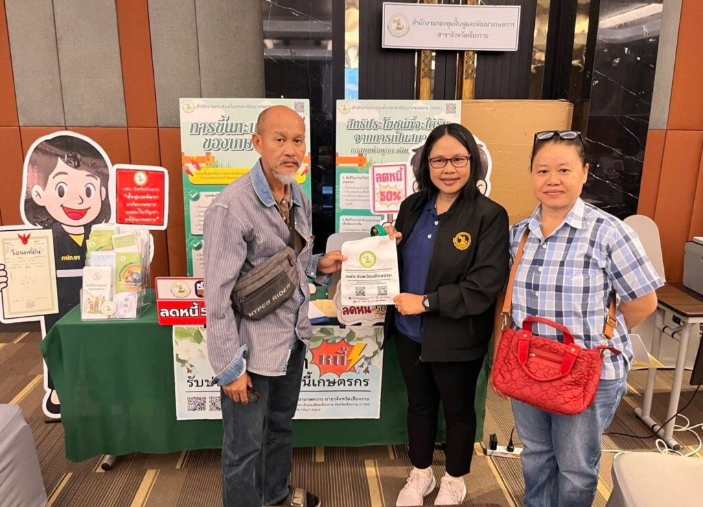 “สำนักงานกองทุนฟื้นฟูและพัฒนาเกษตรกร สาขาจังหวัดเชียงราย (กฟก.) ได้ให้คำปรึกษาและแนะนำในด้านการแก้ไขปัญหาหนี้สินเกษตรกร และด้านการฟื้นฟูและพัฒนาเกษตรกร ตามพระราชบัญญัติกองทุนฟื้นฟูและพัฒนาเกษตรกร ให้เกษตรกร และประชาชนผู้เข้าร่วมงานได้รับทราบตามภารกิจของหน่วยงาน”