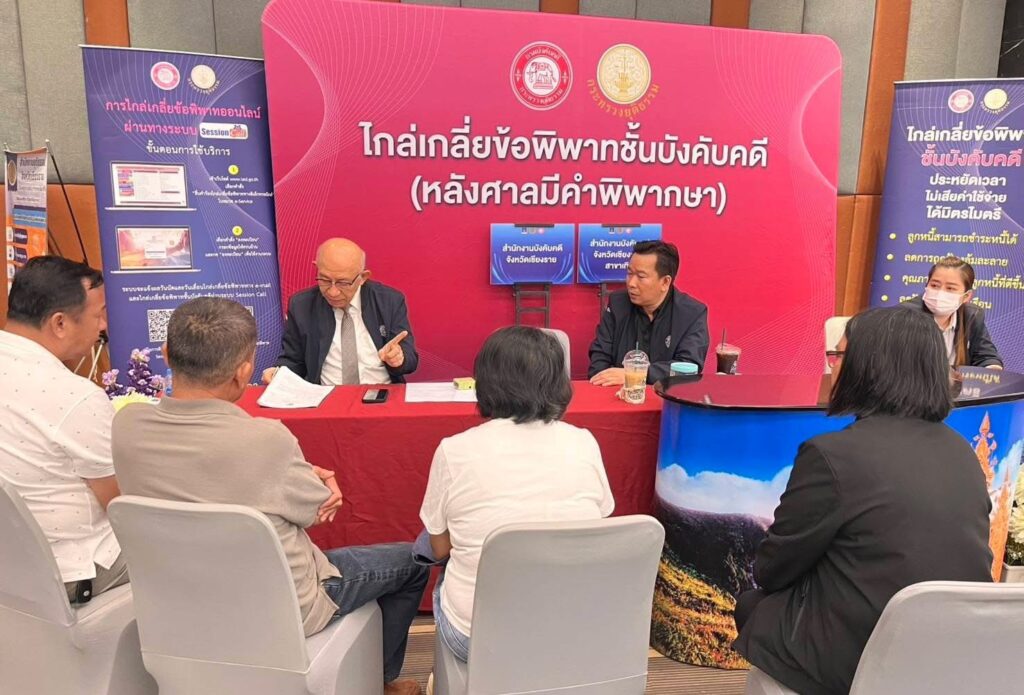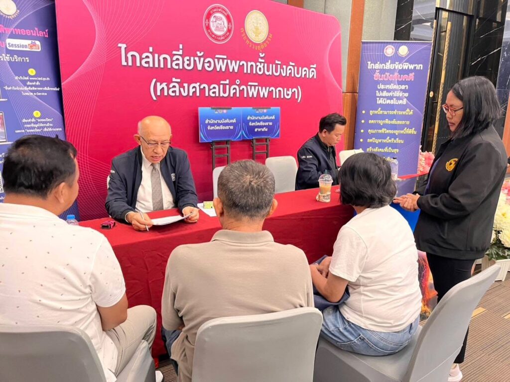 สำหรับการจัดงานที่จังหวัดเชียงราย จัดขึ้นระหว่างวันที่ 3 – 4 เมษายน 2569 โดยมีประชาชนเข้าร่วมกว่า 2,810 ราย แบ่งเป็นลูกหนี้ก่อนฟ้อง 1,579 ราย และหลังฟ้อง 1,231 ราย รวมมูลหนี้กว่า 366 ล้านบาท โดยมีสถาบันการเงินและหน่วยงานที่เกี่ยวข้องเข้าร่วมไกล่เกลี่ยและปรับโครงสร้างหนี้จำนวน 16 แห่ง