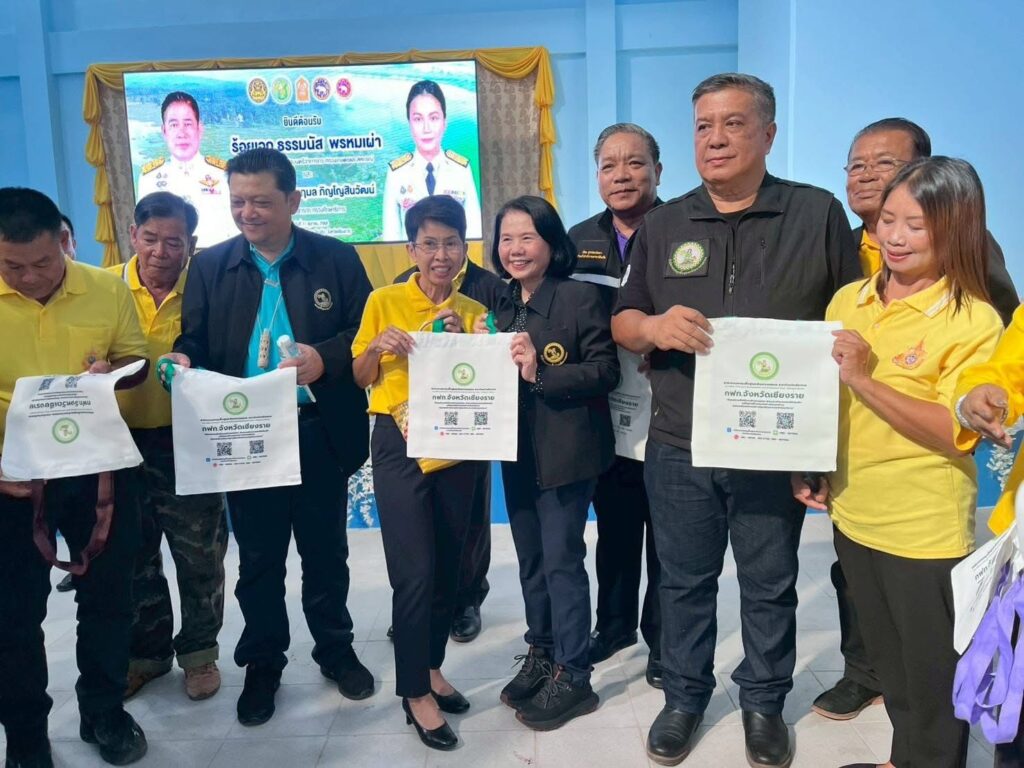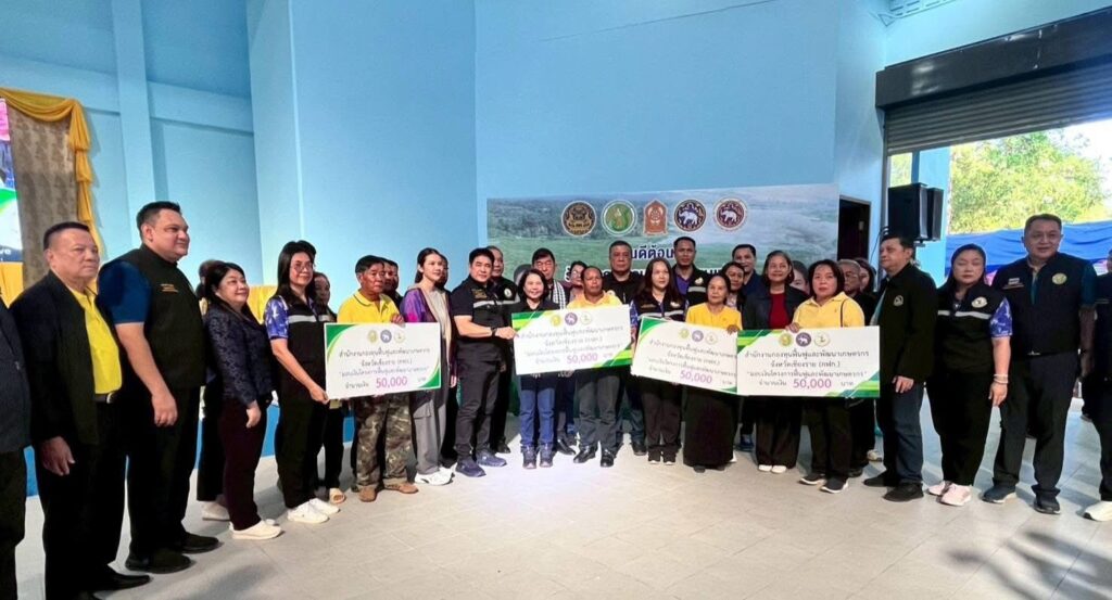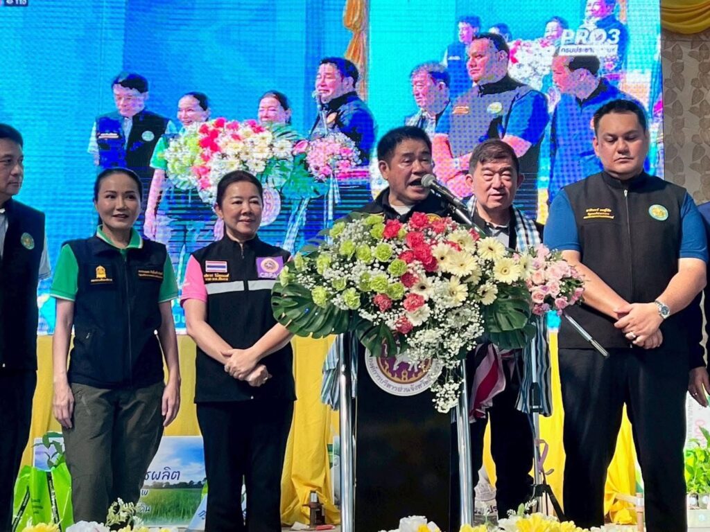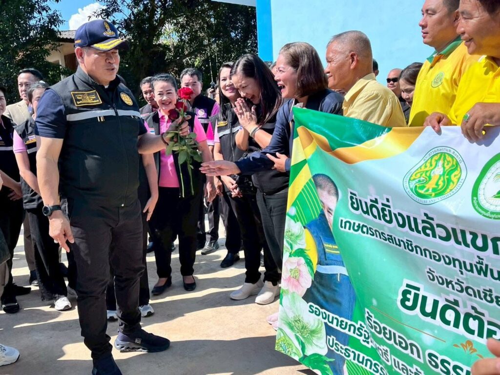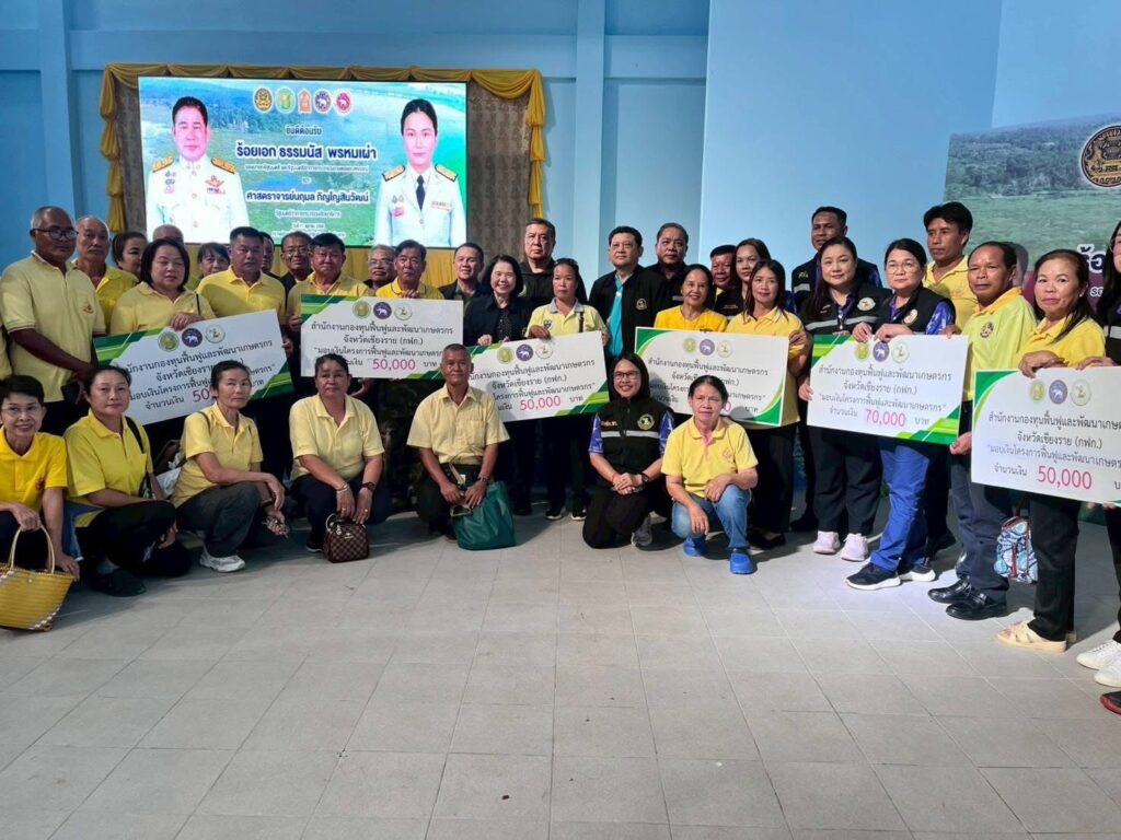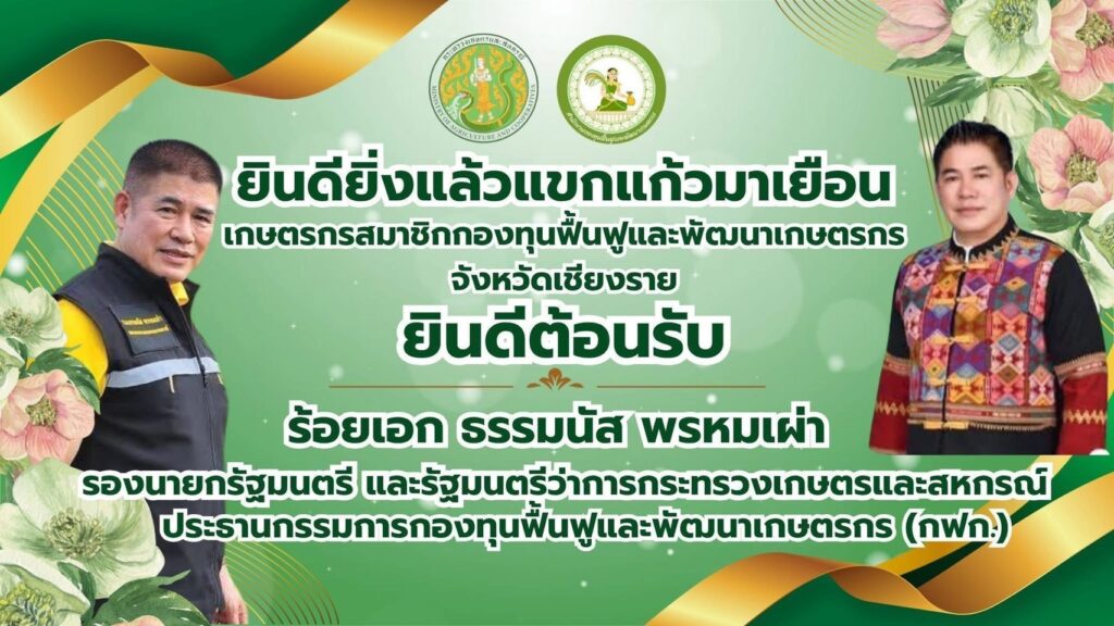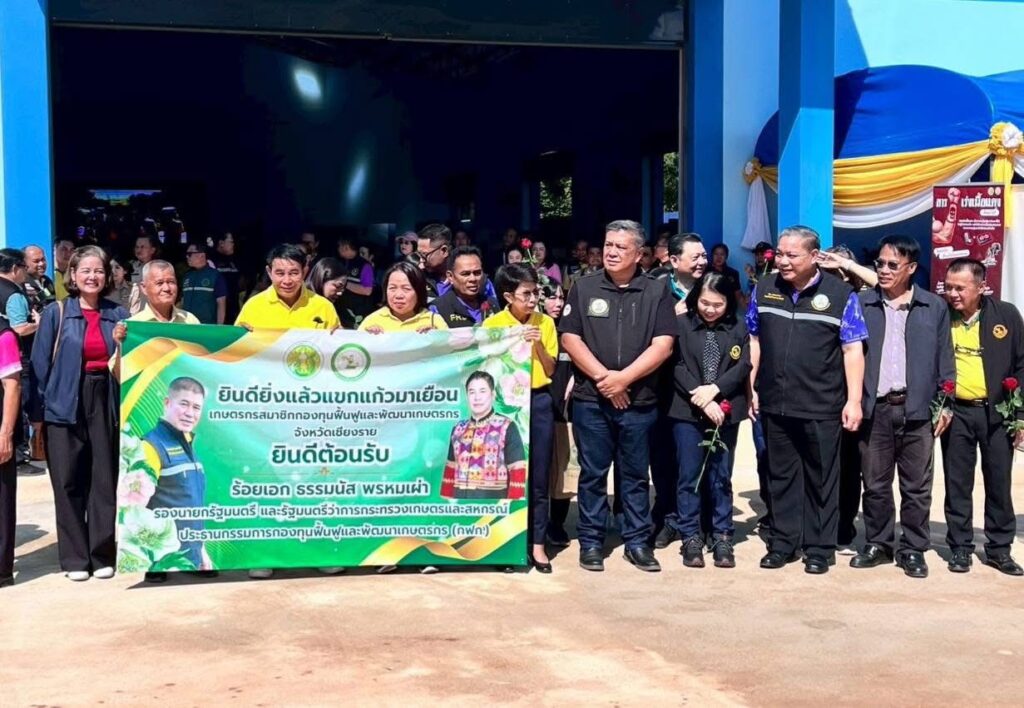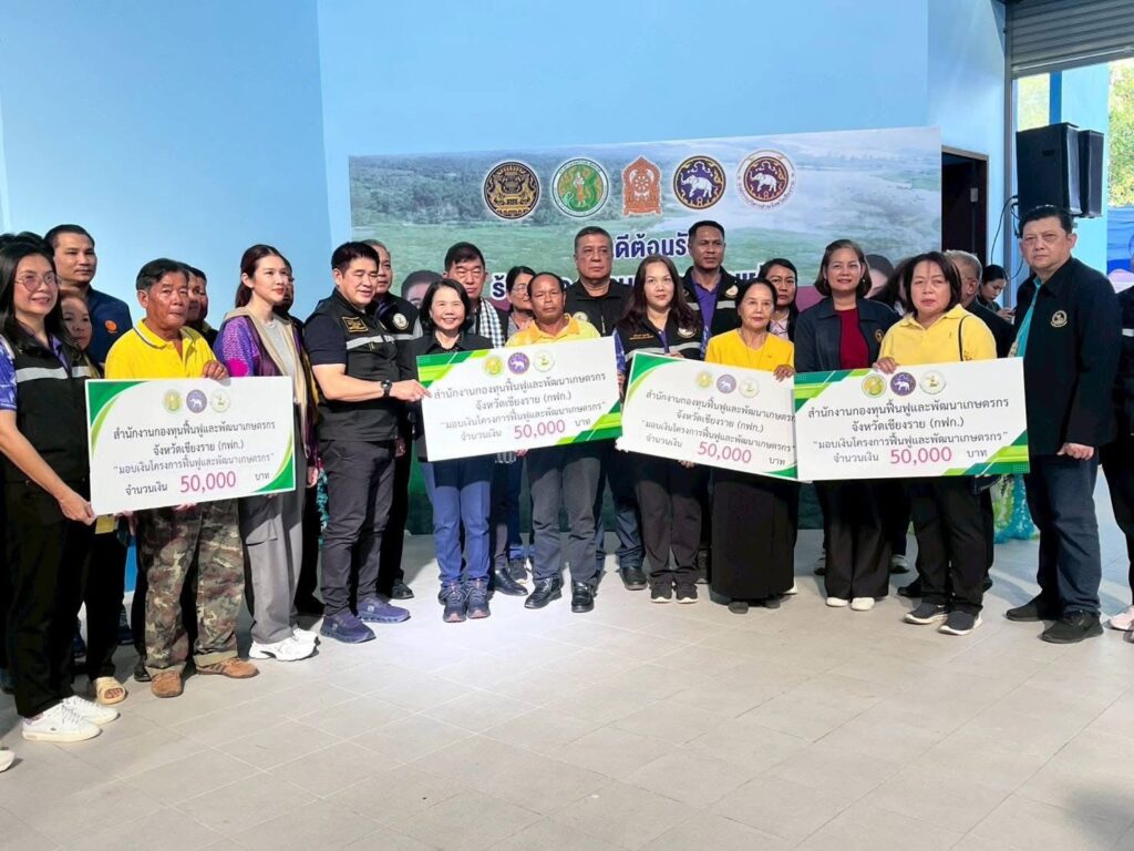 วันที่ 11 ตุลาคม 2568 เวลา 13.00 น. ร้อยเอก ธรรมนัส พรหมเผ่า รองนายกรัฐมนตรี และรัฐมนตรีว่าการกระทรวงเกษตรและสหกรณ์ ประธานกรรมการกองทุนฟื้นฟูและพัฒนาเกษตรกร (กฟก.) พร้อมผู้บริหารกระทรวงเกษตรและสหกรณ์ และนางวรรณี มหานีรานนท์ เลขาธิการสำนักงานกองทุนฟื้นฟูและพัฒนาเกษตรกร ลงพื้นที่จังหวัดเชียงราย โดยร้อยเอก ธรรมนัส พรหมเผ่า รองนายกรัฐมนตรี และรัฐมนตรีว่าการกระทรวงเกษตรและสหกรณ์ ประธานกรรมการกองทุนฟื้นฟูและพัฒนาเกษตรกร (กฟก.) เป็นประธานมอบเงินงบอุดหนุนองค์กรเกษตรกร จังหวัดเชียงราย ตามโครงการฟื้นฟูและพัฒนาเกษตรกร ให้กับองค์กรเกษตรกรที่ได้รับอนุมัติโครงการฟื้นฟูและพัฒนาเกษตรกร จากสำนักงานกองทุนฟื้นฟูและพัฒนาเกษตรกร (กฟก.) งบประมาณประเภทงบอุดหนุน จำนวน 6 องค์กร ณ หอประชุมที่ว่าการอำเภอเวียงชัย จังหวัดเชียงราย