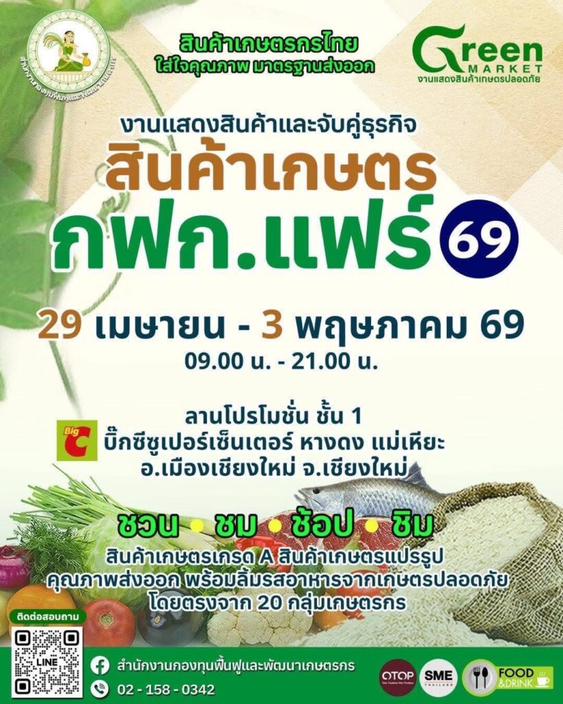 ทั้งนี้ สามารถสอบถามข้อมูลเพิ่มเติมได้ที่ สำนักงานกองทุนฟื้นฟูและพัฒนาเกษตรกร สาขาจังหวัดเชียงราย (กฟก.) ศาลากลางจังหวัดเชียงราย ชั้น 1 โทรศัพท์ 053-150156 ในวันและเวลาราชการ