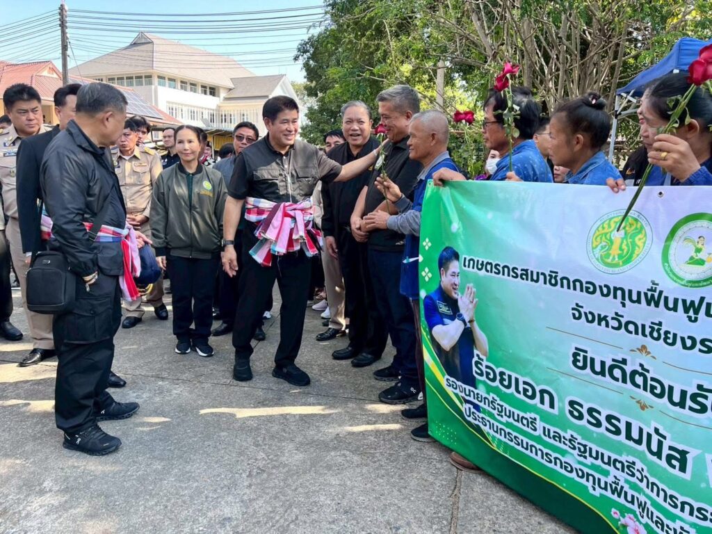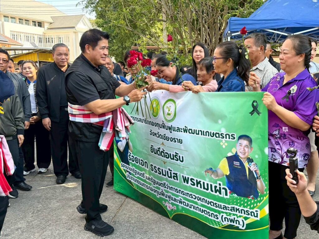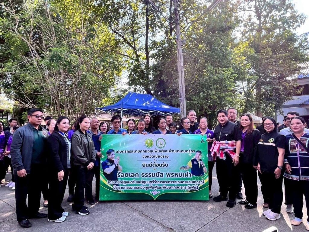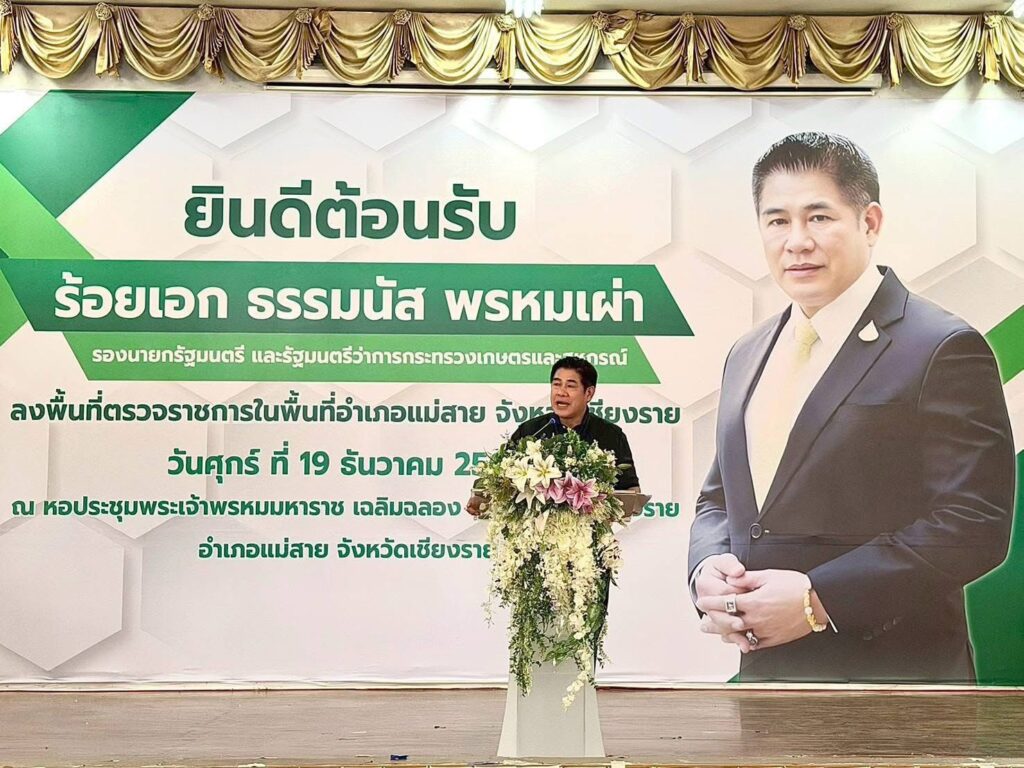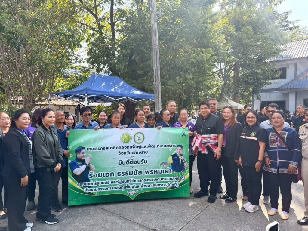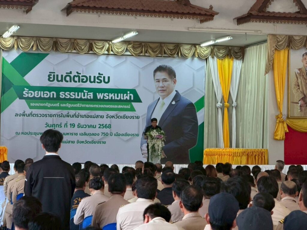 วันที่ 19 ธันวาคม 2568 เวลา 11.00 น. ณ หอประชุมที่ว่าการอำเภอแม่สาย จังหวัดเชียงราย นางวรรณี มหานีรานนท์ เลขาธิการสำนักงานกองทุนฟื้นฟูและพัฒนาเกษตรกร มอบหมายให้ นายนิยม สุวรรณประภา หัวหน้าสำนักงานกองทุนฟื้นฟูและพัฒนาเกษตรกร สาขาจังหวัดเชียงราย เข้าร่วมคณะลงพื้นที่ตรวจราชการของ ร้อยเอก ธรรมนัส พรหมเผ่า รองนายกรัฐมนตรี และรัฐมนตรีว่าการกระทรวงเกษตรและสหกรณ์ ในฐานะประธานกรรมการกองทุนฟื้นฟูและพัฒนาเกษตรกร เพื่อติดตามการดำเนินงานในพื้นที่จังหวัดเชียงราย