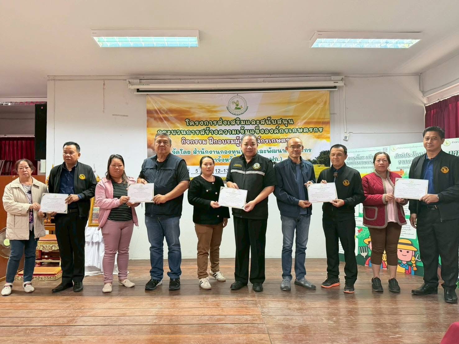 วันที่ 20 มีนาคม 2569 นายนิยม สุวรรณประภา หัวหน้าสำนักงานกองทุนฟื้นฟูและพัฒนาเกษตรกร สาขาจังหวัดเชียงราย (กฟก.) เป็นประธานปิดการอบรม และมอบเกียรติบัตรให้ผู้แทนองค์กรเกษตรกร ที่ผ่านการการอบรมผู้นำองค์กรเกษตรกร หลักสูตรการพัฒนาองค์กรเกษตรกรให้เข้มแข็งภายใต้วิกฤติโลกสู่การพัฒนาที่ยั่งยืน ภายใต้โครงการส่งเสริมและสนับสนุนกระบวนการสร้างความเข้มแข็งองค์กรเกษตรกร รุ่นที่ 6 ระหว่างวันที่ 19 – 20 มีนาคม 2569 ประจำปีงบประมาณ 2569 จำนวน 27 องค์กร เกษตรกร จำนวน 135 คน ณ ห้องประชุมศูนย์วิจัยพืชสวนเชียงราย อำเภอเมืองเชียงราย จังหวัดเชียงราย