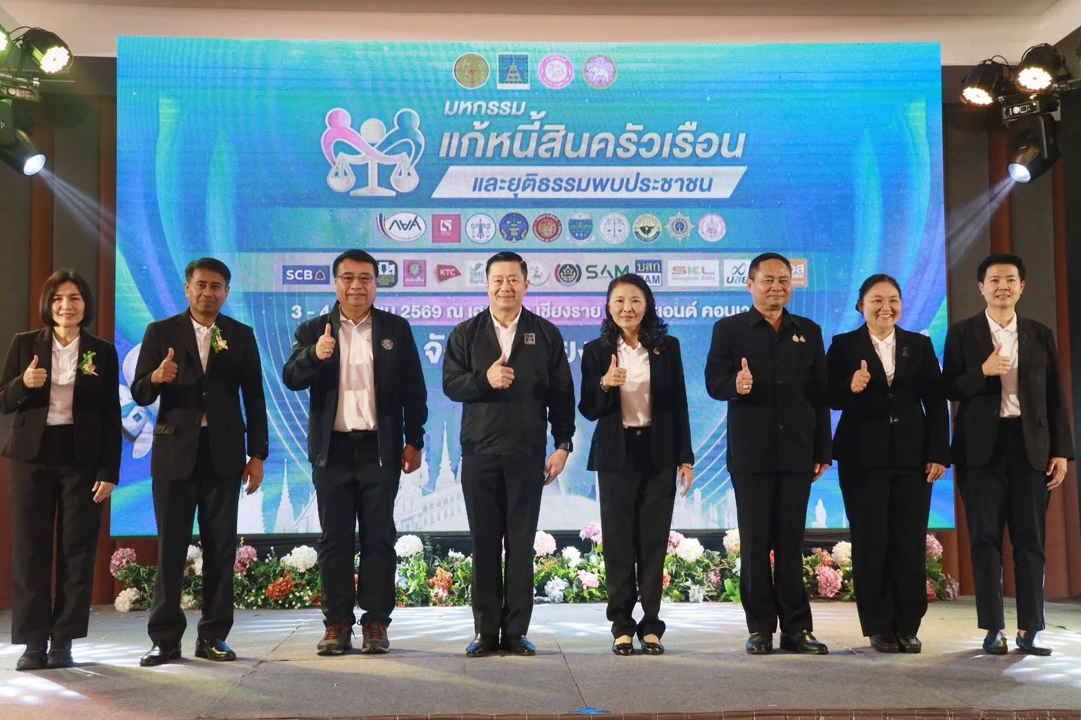 สำหรับการจัดงานที่จังหวัดเชียงราย จัดขึ้นระหว่างวันที่ 3 – 4 เมษายน 2569 โดยมีประชาชนเข้าร่วมกว่า 2,810 ราย แบ่งเป็นลูกหนี้ก่อนฟ้อง 1,579 ราย และหลังฟ้อง 1,231 ราย รวมมูลหนี้กว่า 366 ล้านบาท โดยมีสถาบันการเงินและหน่วยงานที่เกี่ยวข้องเข้าร่วมไกล่เกลี่ยและปรับโครงสร้างหนี้จำนวน 16 แห่ง