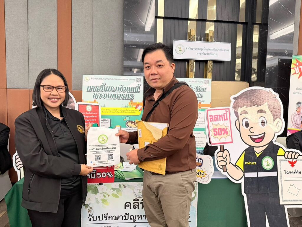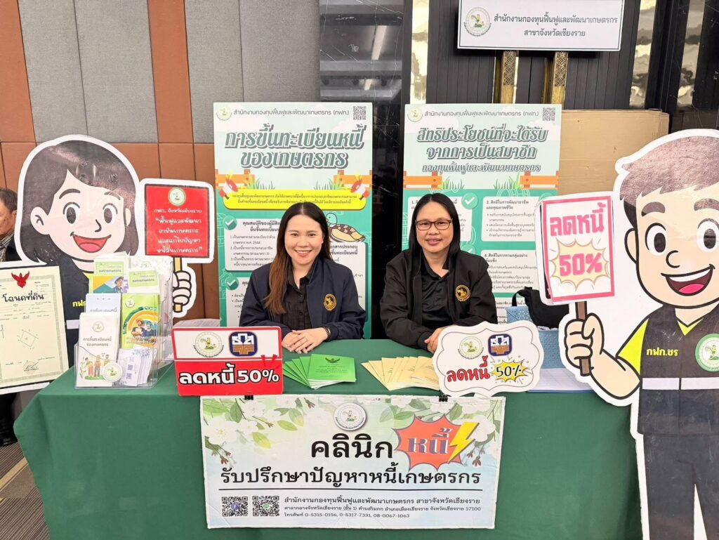 “สำนักงานกองทุนฟื้นฟูและพัฒนาเกษตรกร สาขาจังหวัดเชียงราย (กฟก.) ได้ให้คำปรึกษาและแนะนำในด้านการแก้ไขปัญหาหนี้สินเกษตรกร และด้านการฟื้นฟูและพัฒนาเกษตรกร ตามพระราชบัญญัติกองทุนฟื้นฟูและพัฒนาเกษตรกร ให้เกษตรกร และประชาชนผู้เข้าร่วมงานได้รับทราบตามภารกิจของหน่วยงาน”