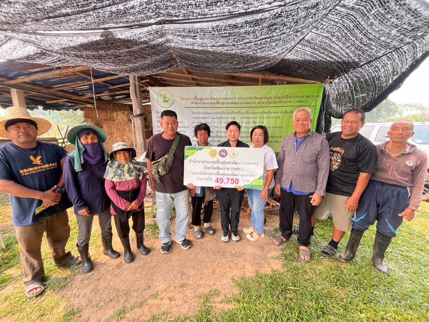 วันที่ 7 เมษายน 2569 เวลา 10.00 น. นายนิยม สุวรรณประภา หัวหน้าสำนักงานกองทุนฟื้นฟูและพัฒนาเกษตรกร สาขาจังหวัดเชียงราย (กฟก.) มอบหมายให้นางสาวจุฑาทิพย์ ปินตาสาร ผู้ปฏิบัติงานสำนักงานสาขาจังหวัด เเละนายณัฐภูมิ เข็มขาว ผู้ปฏิบัติงานกลุ่มงานบริการ ลงพื้นที่มอบเงินอุดหนุนโครงการฟื้นฟูและพัฒนาเกษตรกร และร่วมกิจกรรมส่งมอบเมล็ดพันธุ์ข้าว ให้องค์กรเกษตรกร กลุ่มเกษตรพัฒนาป่าก่อ โดยมีนายประเสริฐ พุทธรางกูร อนุกรรมการกองทุนฟื้นฟูและพัฒนาเกษตรกร จังหวัดเชียงราย (ผู้เเทนองค์กรเกษตรกร) เข้าร่วมด้วย ณ บ้านป่าก่อ หมู่ที่ 2 ตำบลเจริญเมือง อำเภอพาน จังหวัดเชียงราย