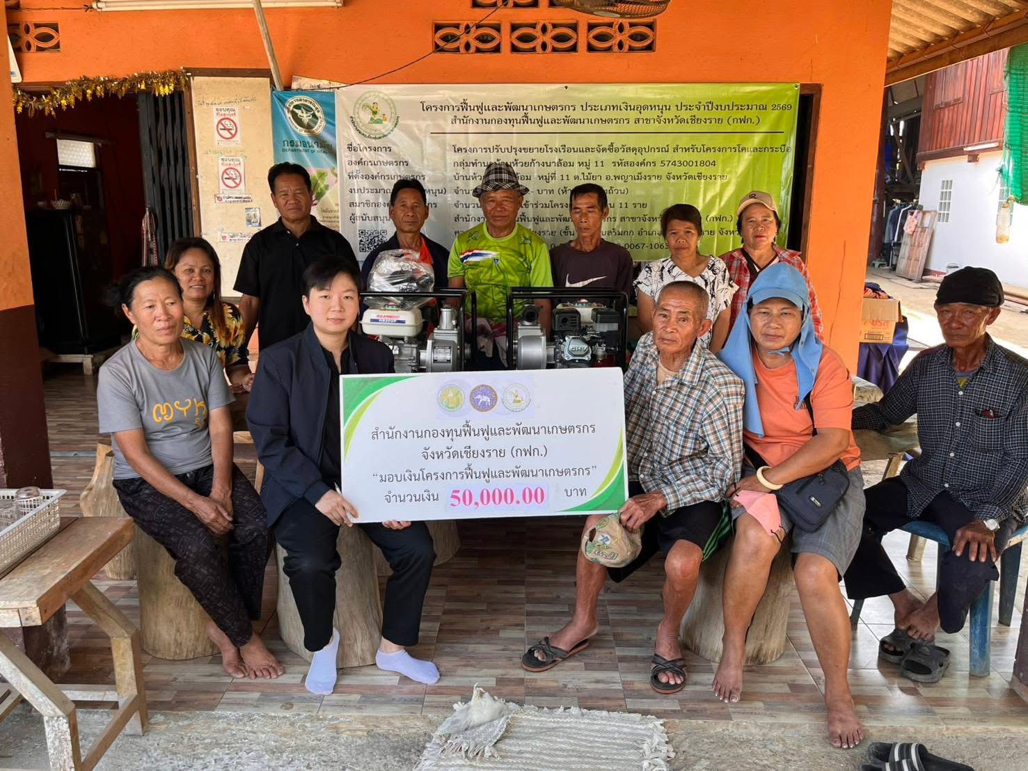 กฟก.จังหวัดเชียงราย มอบเงินอุดหนุนโครงการฟื้นฟูและพัฒนาเกษตรกร และร่วมกิจกรรมส่งมอบเครื่องสูบน้ำให้องค์กรเกษตรกร อำเภอพญาเม็งราย