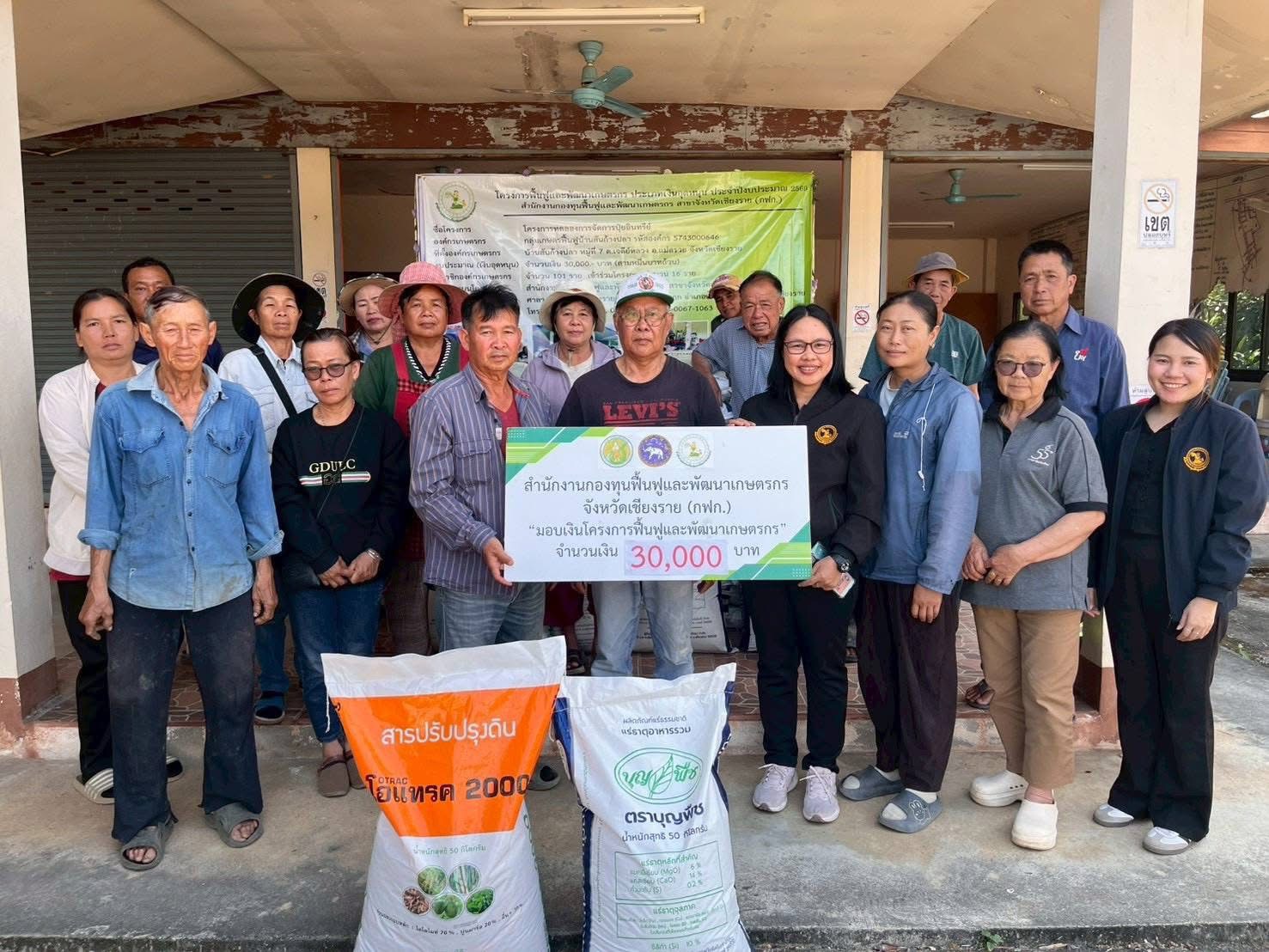 กฟก.จังหวัดเชียงราย มอบเงินอุดหนุนโครงการฟื้นฟูและพัฒนาเกษตรกร และร่วมกิจกรรมส่งมอบปุ๋ยอินทรีย์ ให้องค์กรเกษตรกร อำเภอแม่สรวย