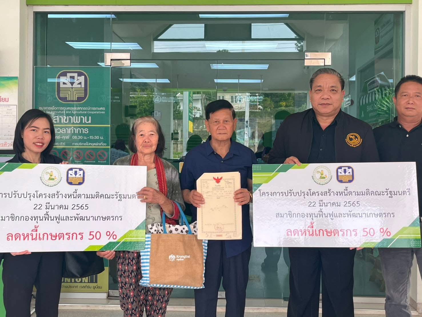 เกษตรกรเชียงรายได้เฮ ธ.ก.ส.ส่งมอบโฉนดที่ดินคืน สมาชิก กฟก. หลังชำระเงินต้นครึ่งหนึ่ง (ร้อยละ 50) และธนาคารฯ ธ.ก.ส.ได้รับชดเชยเงินต้นที่เหลือ พร้อมดอกเบี้ย ปิดหนี้ให้ตามมติคณะรัฐมนตรี แล้ว